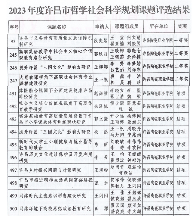 近日中共许昌市委宣传部、许昌市社会科学界联合会公布了2023年度许昌市哲学社会科学规划课题评选结果的通知。