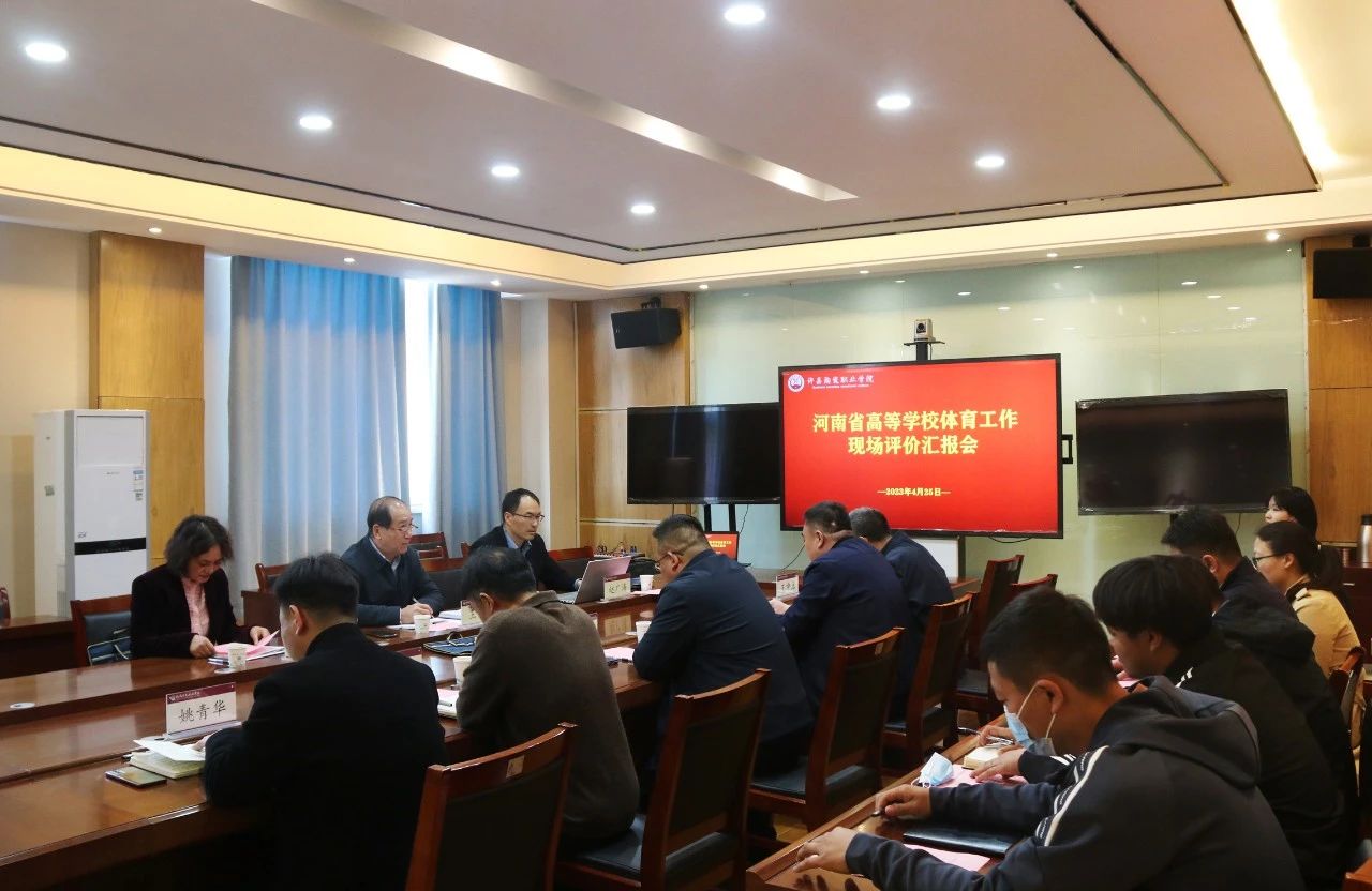 2023年4月25日下午,由河南省学生体育总会副主席、河南工业大学原体育学院院长王晏教授,河南财政金融学院体育学院院长赵广涛教授,郑州旅游职业学院体育教学部主任薛月教授一行三人组成的河南省教育厅高等学校体育工作现场评价第三专家组莅临Beat365开展体育工作现场评价与指导工作。学校副院长王中亚、工会主席郭磊、教务处副处长姚青华、公共基础部主任王中立及相关职能处室负责人参加会议。本次会议由郭磊主持。