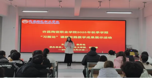 为深入贯彻习近平新时代中国特色社会主义思想,引导学生感受中华优秀传统文化的独特魅力和深厚底蕴,树立文化自觉与文化自信,成为优秀传统文化的传承者、践行者,推动思政小课堂与社会大课堂深度融合。2025年12月26日下午,学校教务处主办、马克思主义学院和校团委承办的2025年秋季学期《习近平新时代中国特色社会主义思想概论》课程实践教学成果展示活动,在郑州校区明德楼210报告厅顺利举行。马克思主义学院院长、教务处副处长康运河、校团委副书记高桂桂出席活动,教务科科长王慧子、马克思主义学院院长助理瞿园园、马克思主义学院教学秘书李文超、“毛泽东思想和中国特色社会主义理论体系概论”教研室主任王佳、陶瓷艺术与智能建造学院分团委书记蔡壮壮担任本次活动的评委。“习近平新时代中国特色社会主义思想概论”教研室主任及任课教师、参赛学生以及各学院学生代表参与了此次活动。