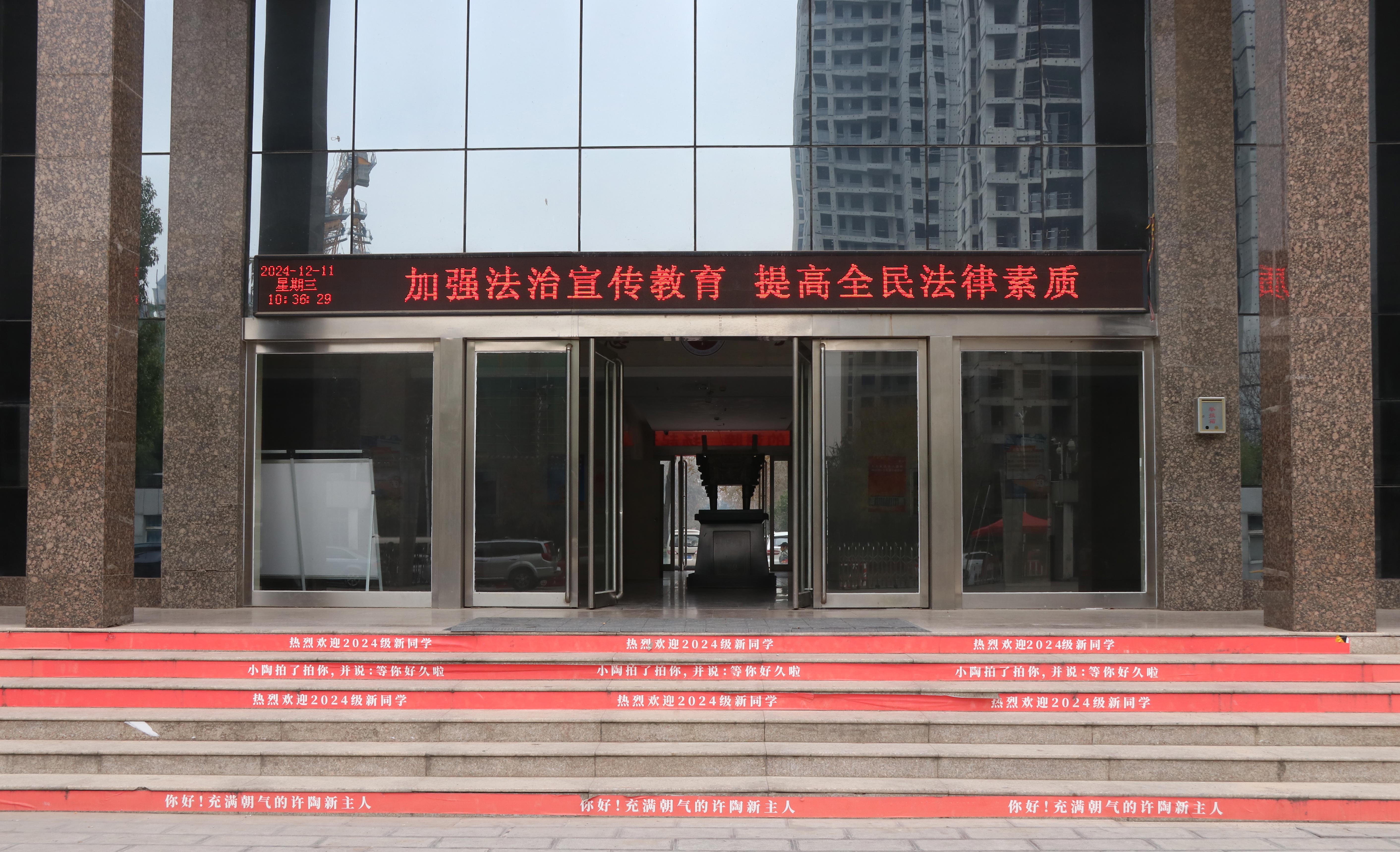 为弘扬宪法精神、树立宪法权威,提升学校师生法治意识和法律素养。采用“线上+线下”相结合的宣传方式。线上,充分利用学校官网、微信公众号、抖音等媒体平台,推送宪法、民法典、教育法等法律相关知识10余条;线下,通过张贴宪法主题海报4张、校内LED屏点亮“弘扬宪法精神树立宪法权威”等滚动播放宣传标语5余条、制作爱国主义、交通安全展板等多种方式,扩大宣传覆盖面,强化宣传效果,营造了师生共同学习宪法的浓厚氛围。
