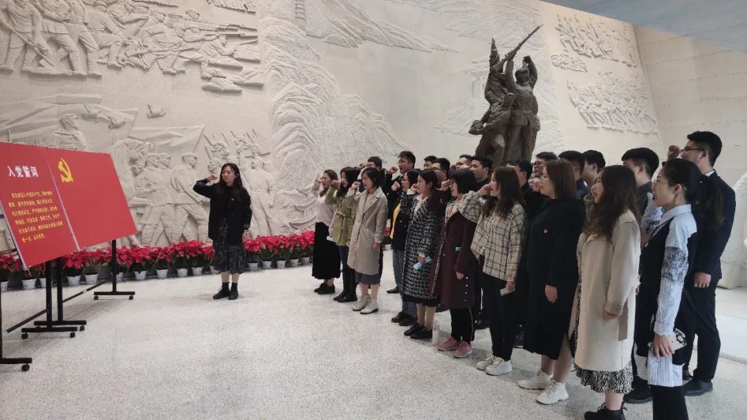 在革命烈士纪念馆一楼,全体党员面向党旗、高举右手,重温入党誓词,大家激情饱满、铿锵有力,誓言震撼人心、催人奋进,使每一名党员牢记共产党人的使命担当。