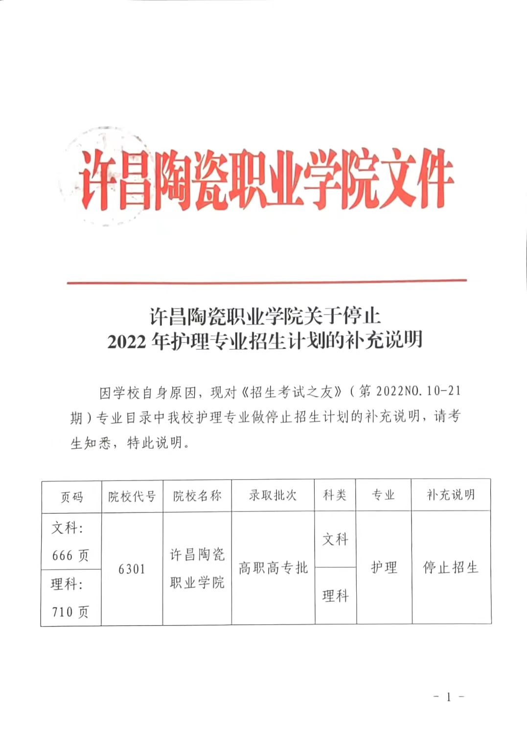 Beat365中文官方网站关于停止2022年护理专业招生计划的补充说明