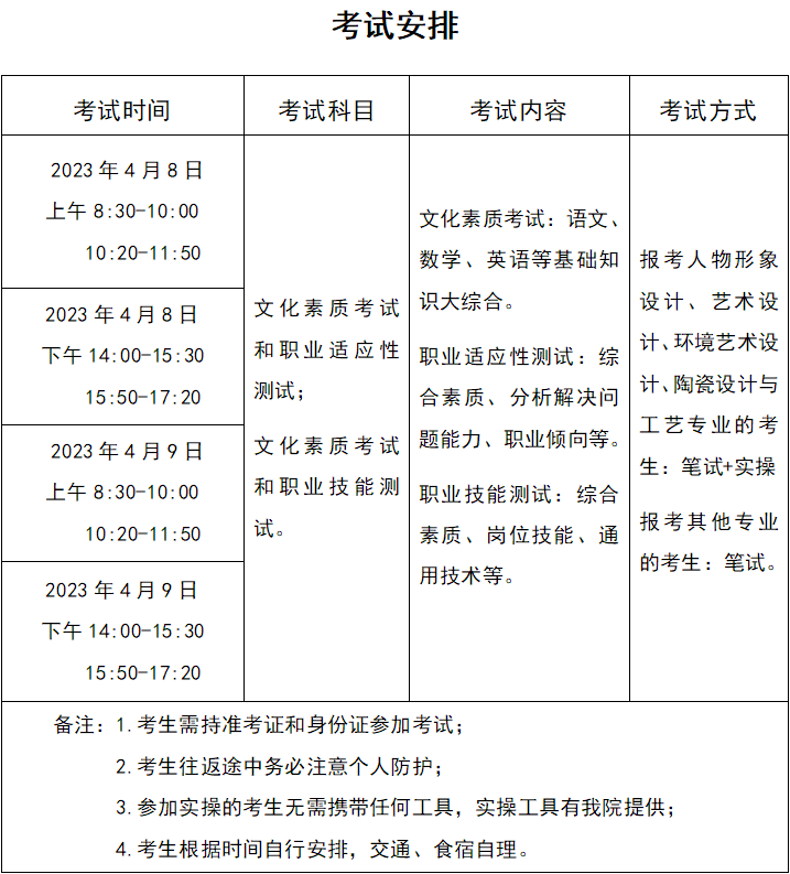 4.考试时间为2023年4月8日-2023年4月9日,分两天四个批次进行,具体考试安排以考生准考证时间为准。