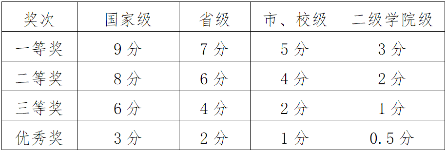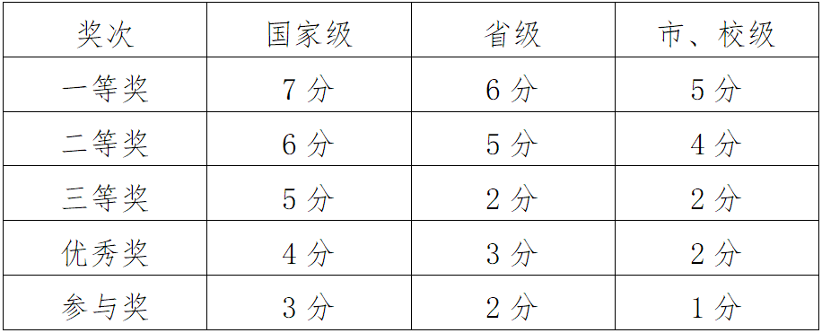 3.凡参加学校组织的各项活动(如,征文大赛、演讲比赛、摄影比赛等),最低1分/次,获奖者按每次所获奖次进行加分,同一赛事不累计加分,同一活动不累计加分。