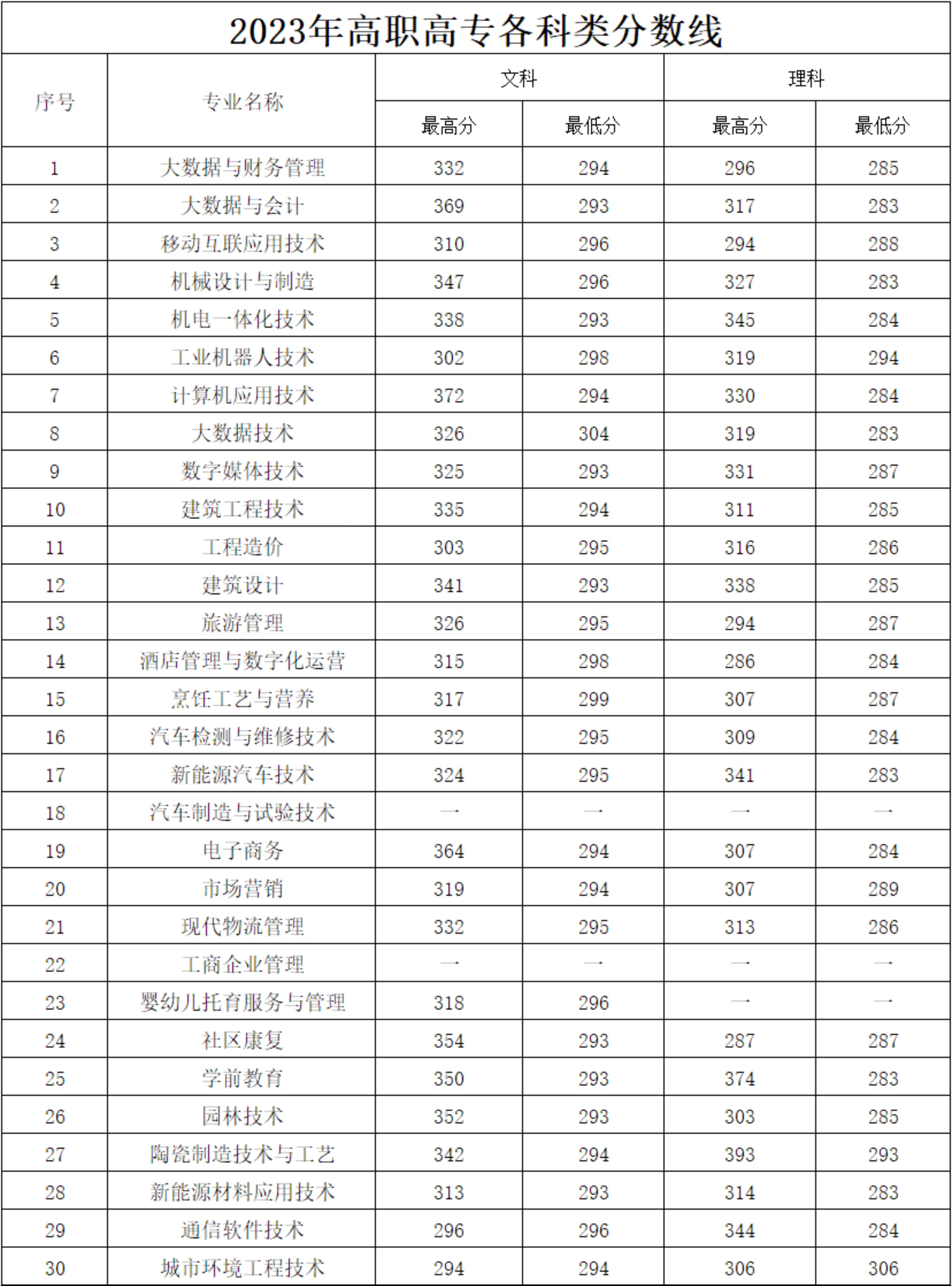 2023年高职高专各科类分数线