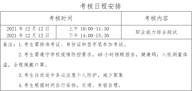 按照教育部关于高职扩招的要求和国家教育考试的规定和标准,针对不同群体特点和受教育状况,组织命题、考试。我院2021年高职扩招单独招生考试形式为职业能力综合测试,总分150分,考试统一安排在 2021年12月 12日(星期日)分俩个时段进行进行。