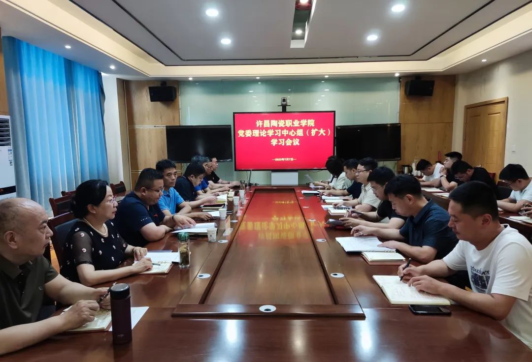 7月7日,Beat365在行政楼视频会议室召开七月份党委理论学习中心组(扩大)学习会议。校党委书记肖绍俊,副院长张长力、王中亚,纪委书记郭磊出席会议,各党支部书记、副书记和各单位负责人参会。肖书记主持会议。
