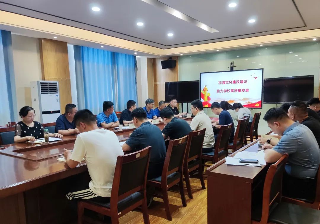 郭磊作《加强党风廉政建设,助力学校高质量发展》的报告,传达学习了中共河南省委教育工委 中共河南省教育厅党组印发的《关于在党员干部中开展“明方向、立规矩、正风气、强免疫”专题纪律教育工作方案》,并围绕当前党风廉政建设工作面临的严峻形势、党风廉政建设实践案例、“清廉学校”建设等三个方面,为与会人员上了一堂生动的党风党纪廉洁教育课,主题鲜明、条理清晰、重点突出、案例生动,既有理论高度,又有思想深度,对学校加强党风廉政建设,贯彻落实全面从严治党具有重要的指导意义。