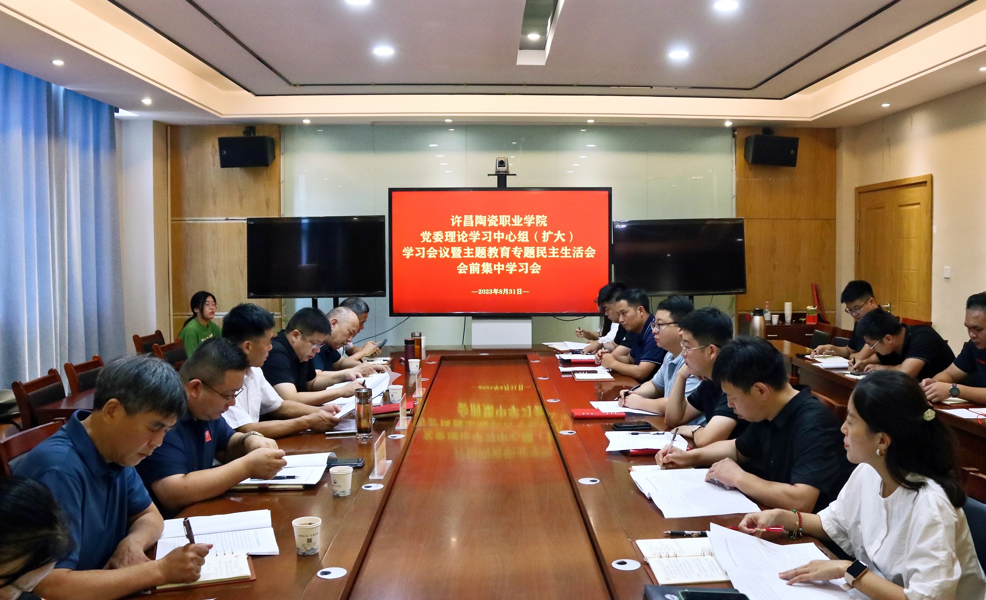 8月31日,Beat365在111视频会议室召开党委理论学习中心组(扩大)学习会议暨主题教育专题民主生活会会前集中学习会。校党委书记肖绍俊,副院长张长力、王中亚出席会议,各党支部书记、副书记和各单位负责人参会。肖书记主持会议。