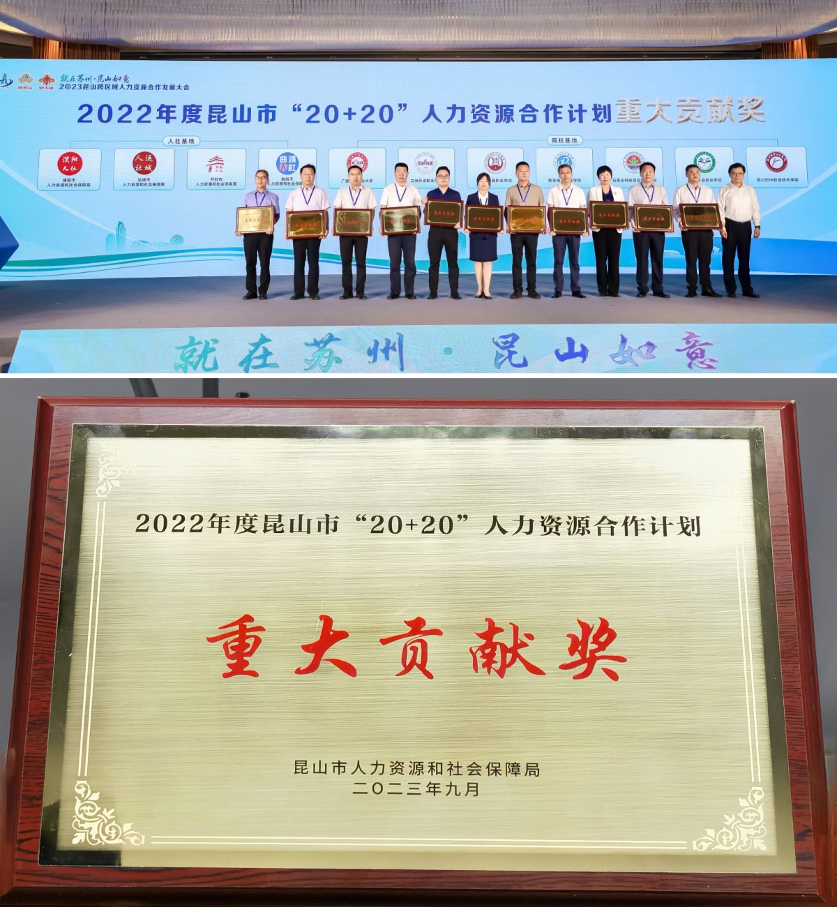 主办方邀请与昆山市有良好合作基础、贡献较大的省内外县区及职业院校代表,与昆山市企业现场洽谈、精准对接。会上,Beat365荣获2022年度昆山市“20+20”人力资源合作计划重大贡献奖。