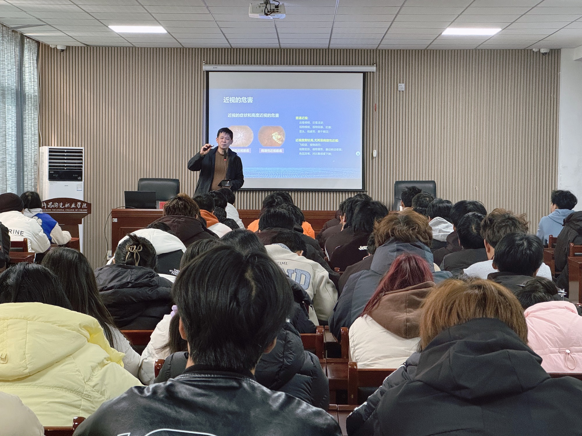 在知识科普讲座环节,徐辉医生和李丽医生围绕近视发病现状、近视成因、近视受限就业政策解读等几个方面为师生进行了科普。此次讲座,帮助师生增强了爱眼、护眼意识,提高师生的眼健康知识水平,让师生充分认识到养成良好用眼习惯的重要性。