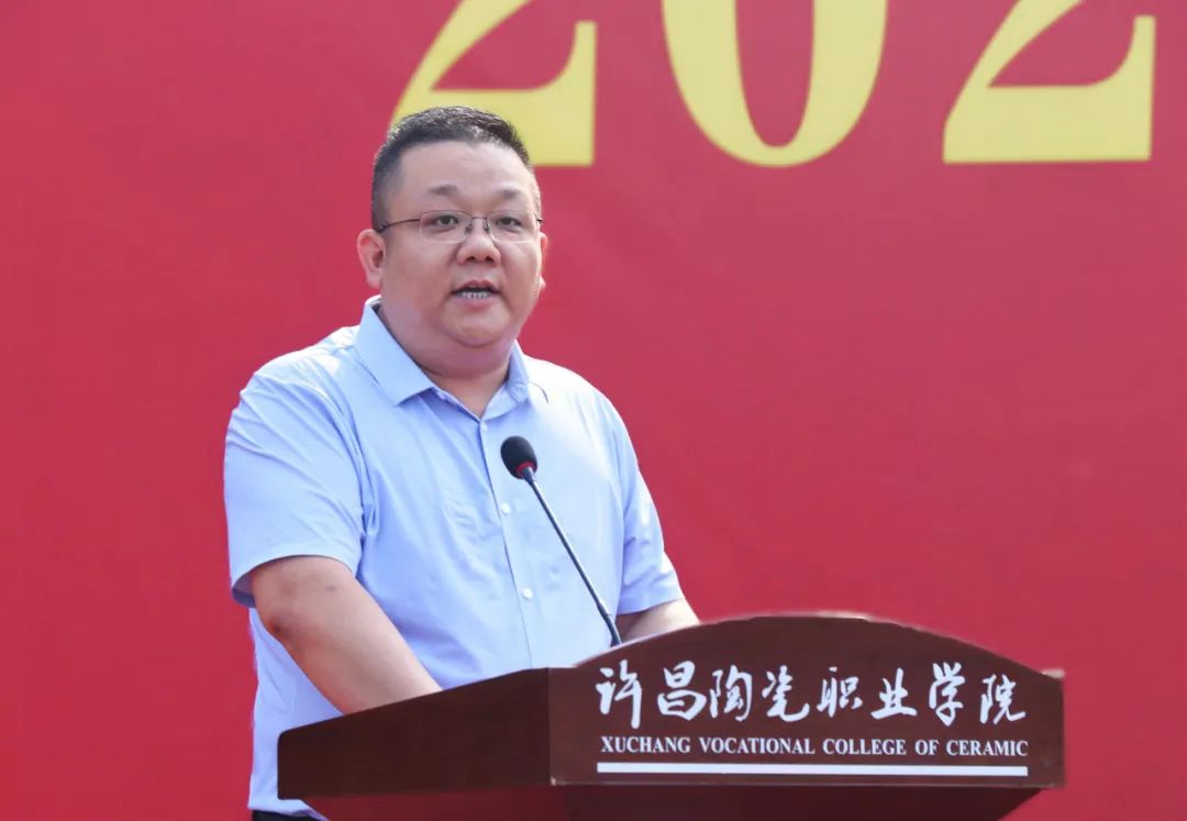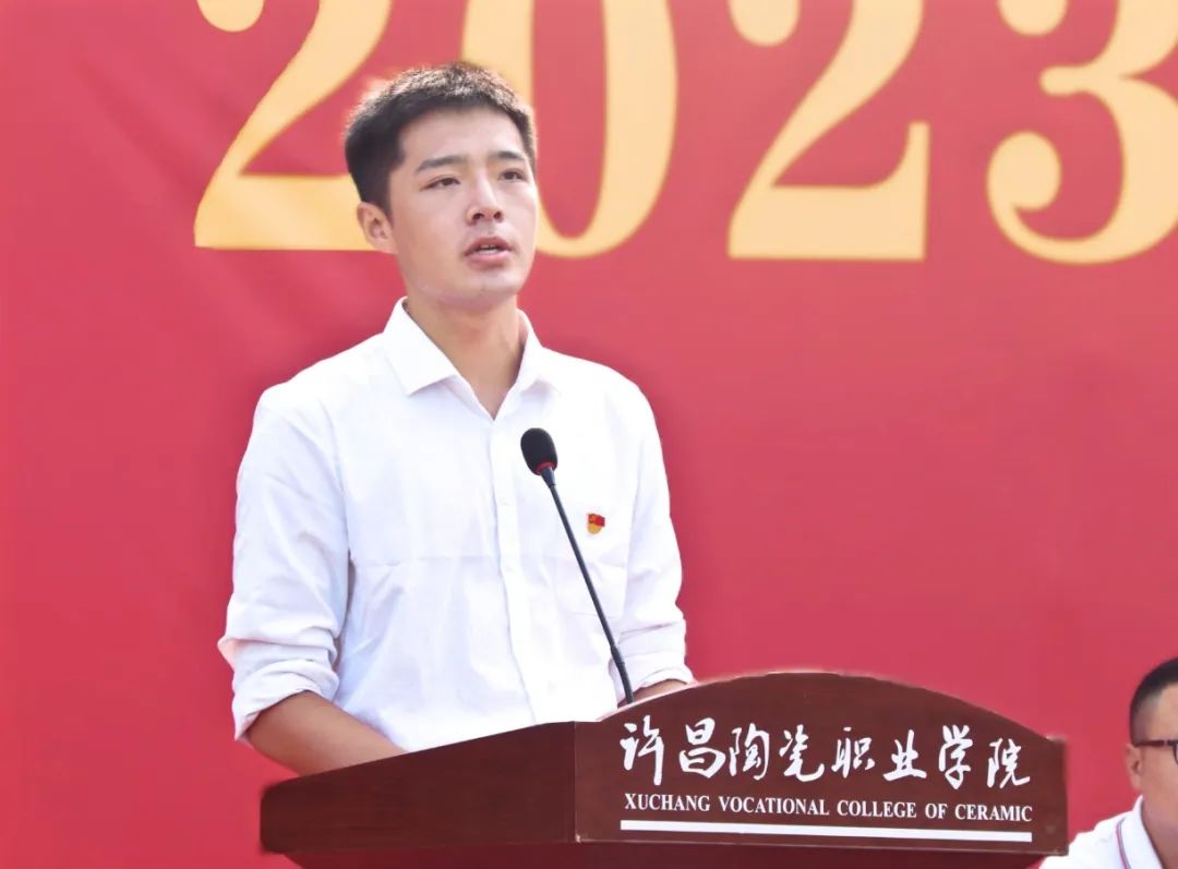 22级学生代表张益铭发言。他通过讲述自己在许陶的学习经历、成长故事,勉励学弟学妹们要牢记“自强不息、大道致远”的校训,学会尊重,学会责任,提升境界,求学于许陶,要无愧于自己、无愧于学校、无愧于党和国家。