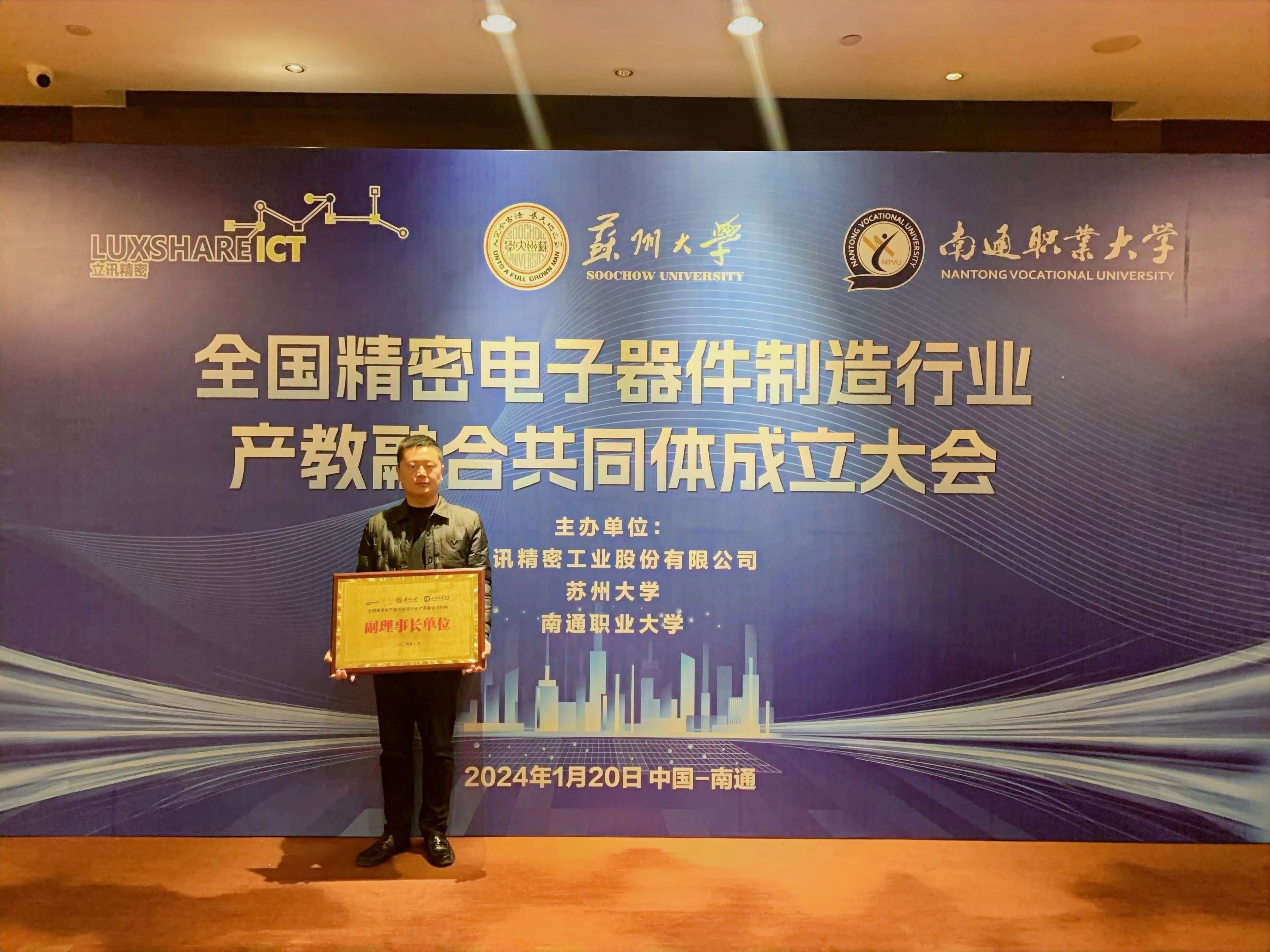 1月20日,全国精密电子器件制造行业产教融合共同体成立大会在江苏南通召开。Beat365当选全国精密电子器件制造行业产教融合共同体副理事长单位。