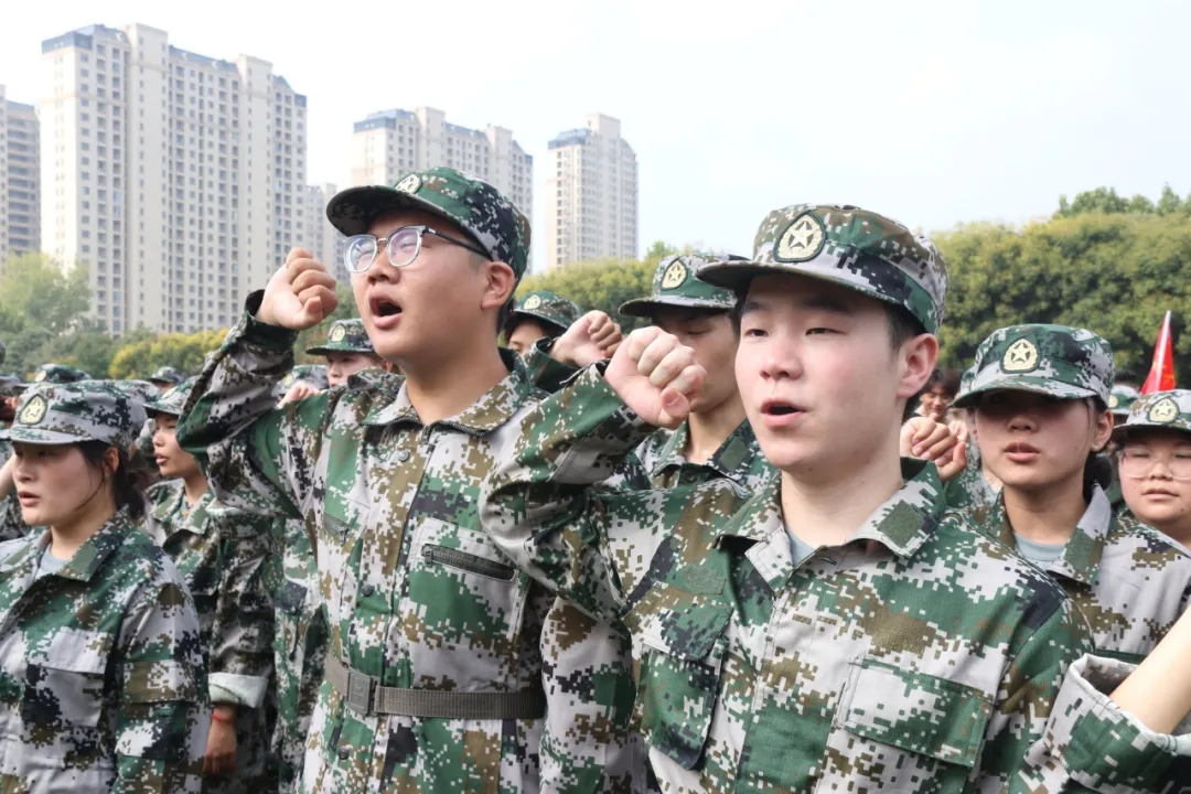 2024级学生孙则作为参训学员领誓:服从命令,听从指挥,尊重教官,刻苦训练,遵守纪律,磨炼意志,不怕困难,争当军训优秀学员,争创军训先进集体,用意志书写学校生活新篇章,用行动打开梦想之门!