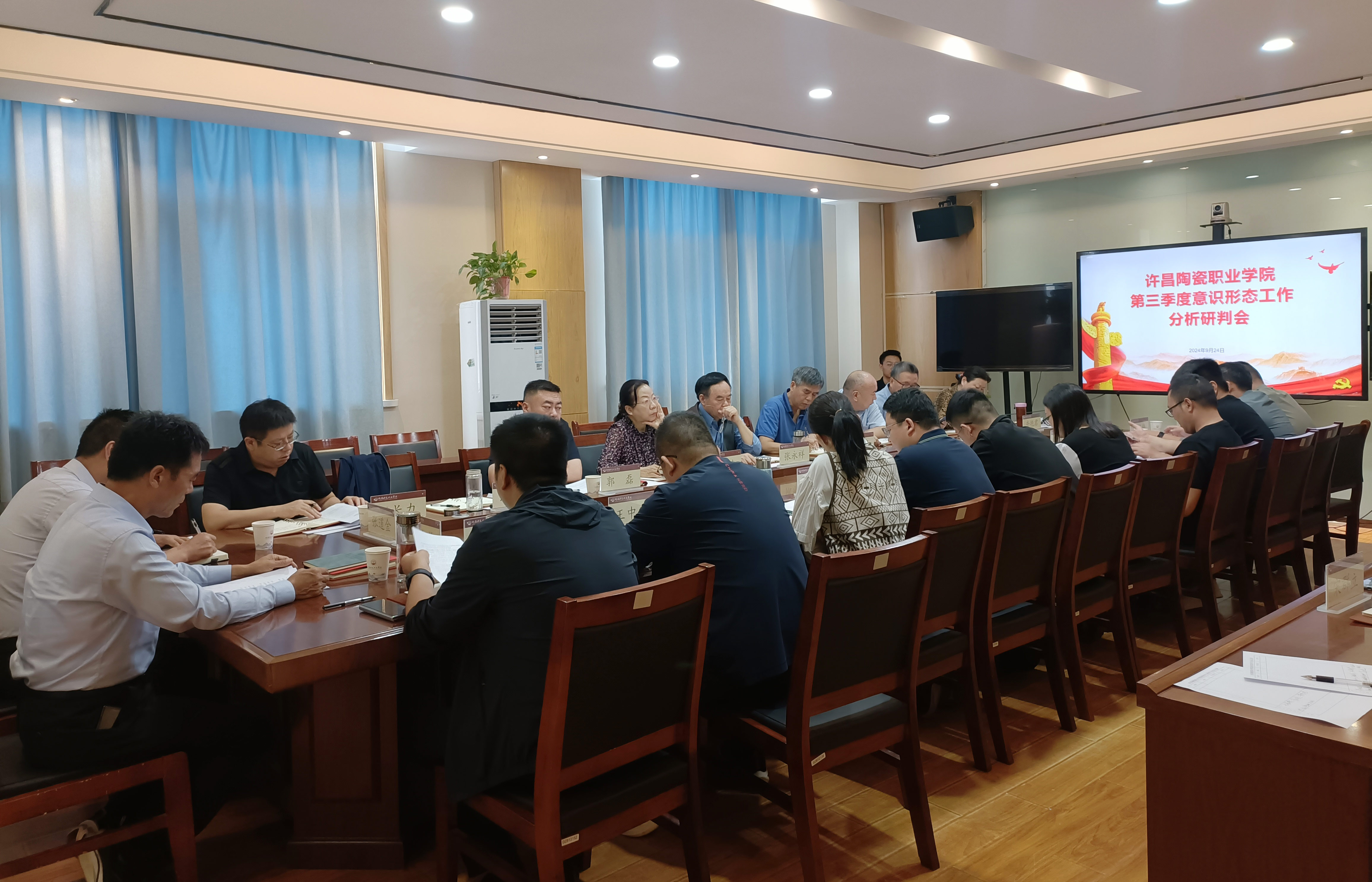 9月24日上午,学校在111会议室召开2024年第三季度意识形态工作分析研判会,校领导肖绍俊、张道金、黄春建、张长力、王中亚、冯朝印、郭磊出席会议。各单位负责人、各党支部书记参加会议。党委书记肖绍俊主持会议。