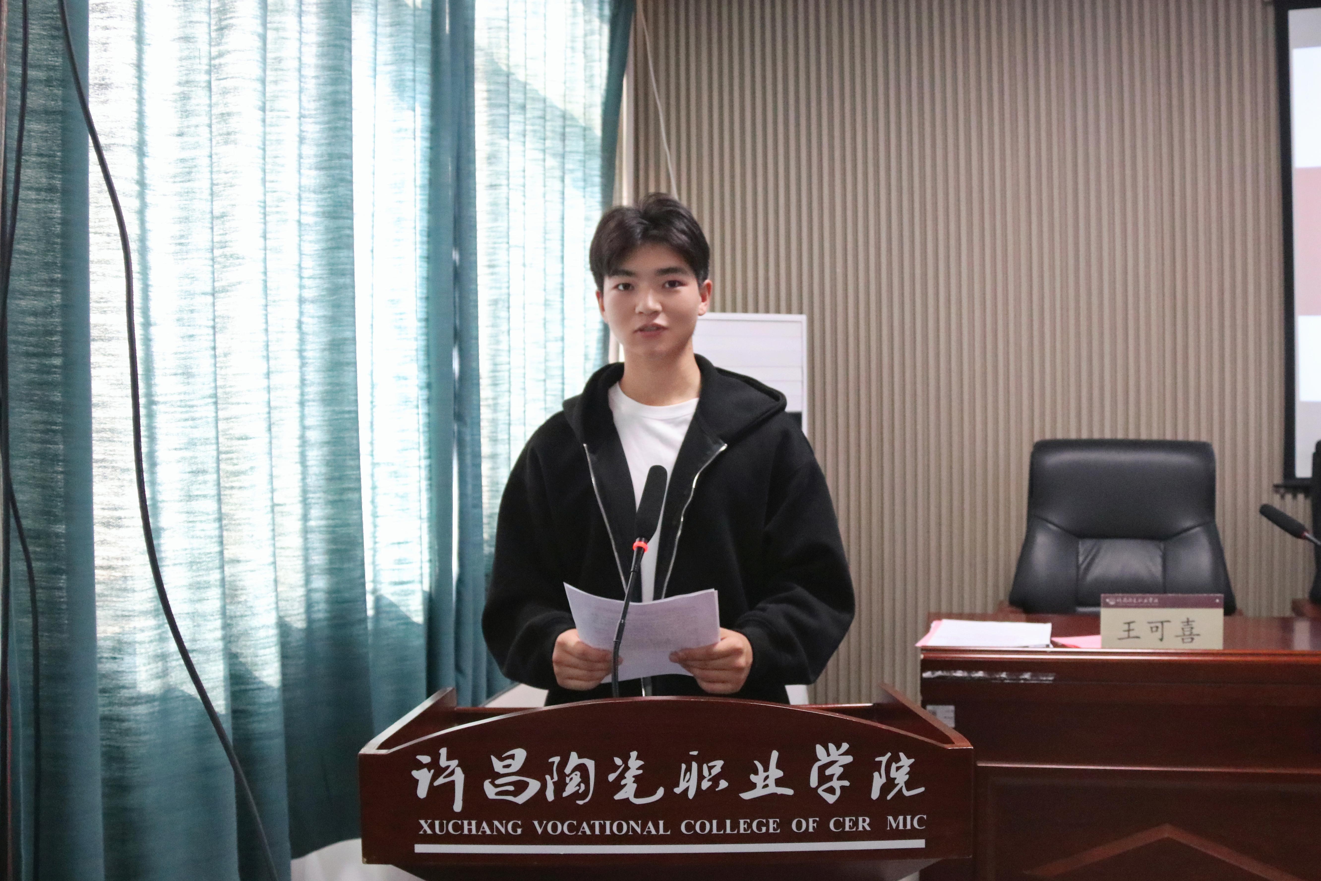 学生代表许正翔发言,他表示作为大学生,要充分认识文明素养教育的重要性,从自身做起,从点滴做起,以实际行动推进校园文化建设,建设文明许陶、和谐许陶、美丽许陶。
