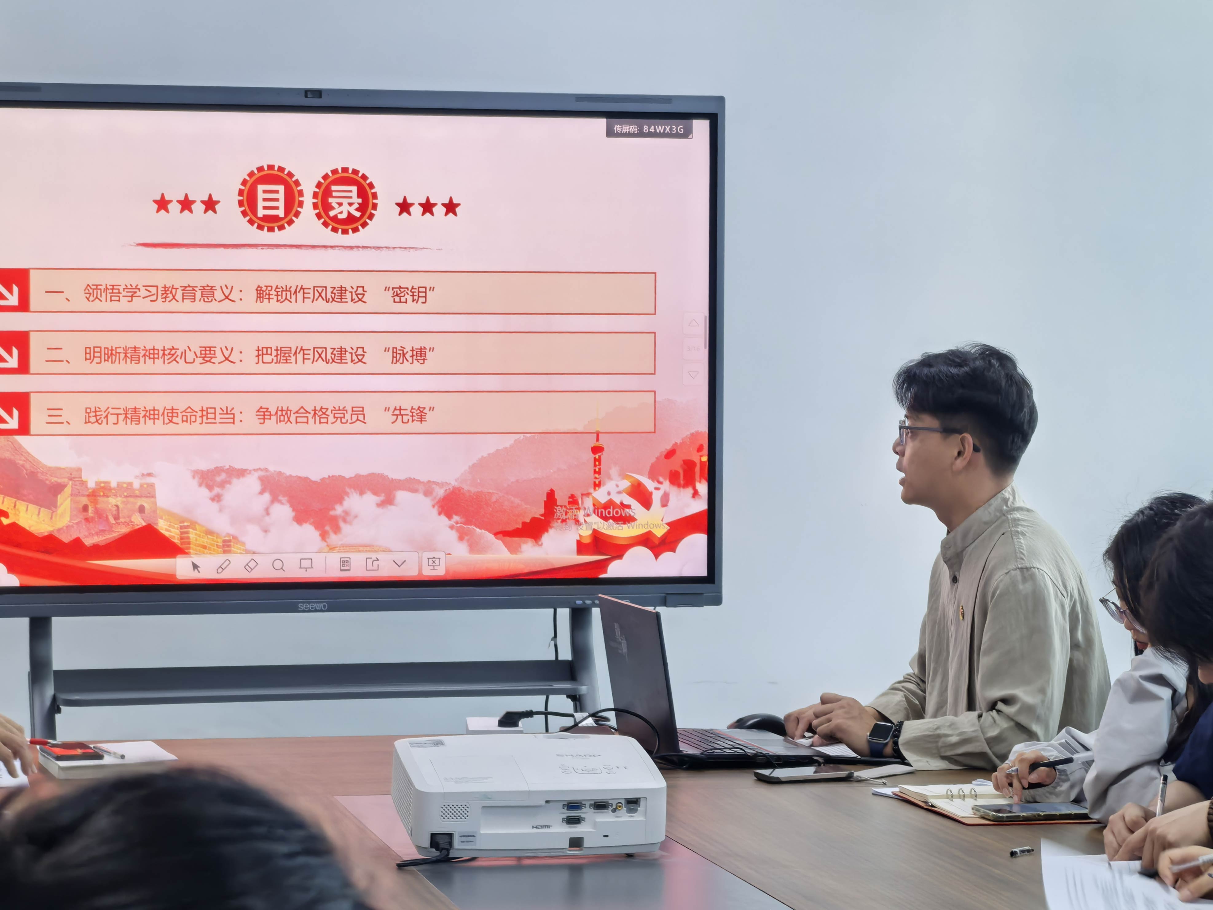专题党课由党支部副书记许智博进行讲授,围绕“严守中央八项规定精神,争做新时代合格党员”主题,从三个方面带领全体党员进行学习:领悟学习教育意义,解锁作风建设“密钥”;明晰精神核心要义,把握作风建设“脉搏”;践行精神使命担当,争做合格党员“先锋”。他号召党员将落实中央八项规定融入日常工作,在服务师生、科研创新、廉洁自律中发挥先锋模范作用,以实干担当彰显新时代党员风采。
