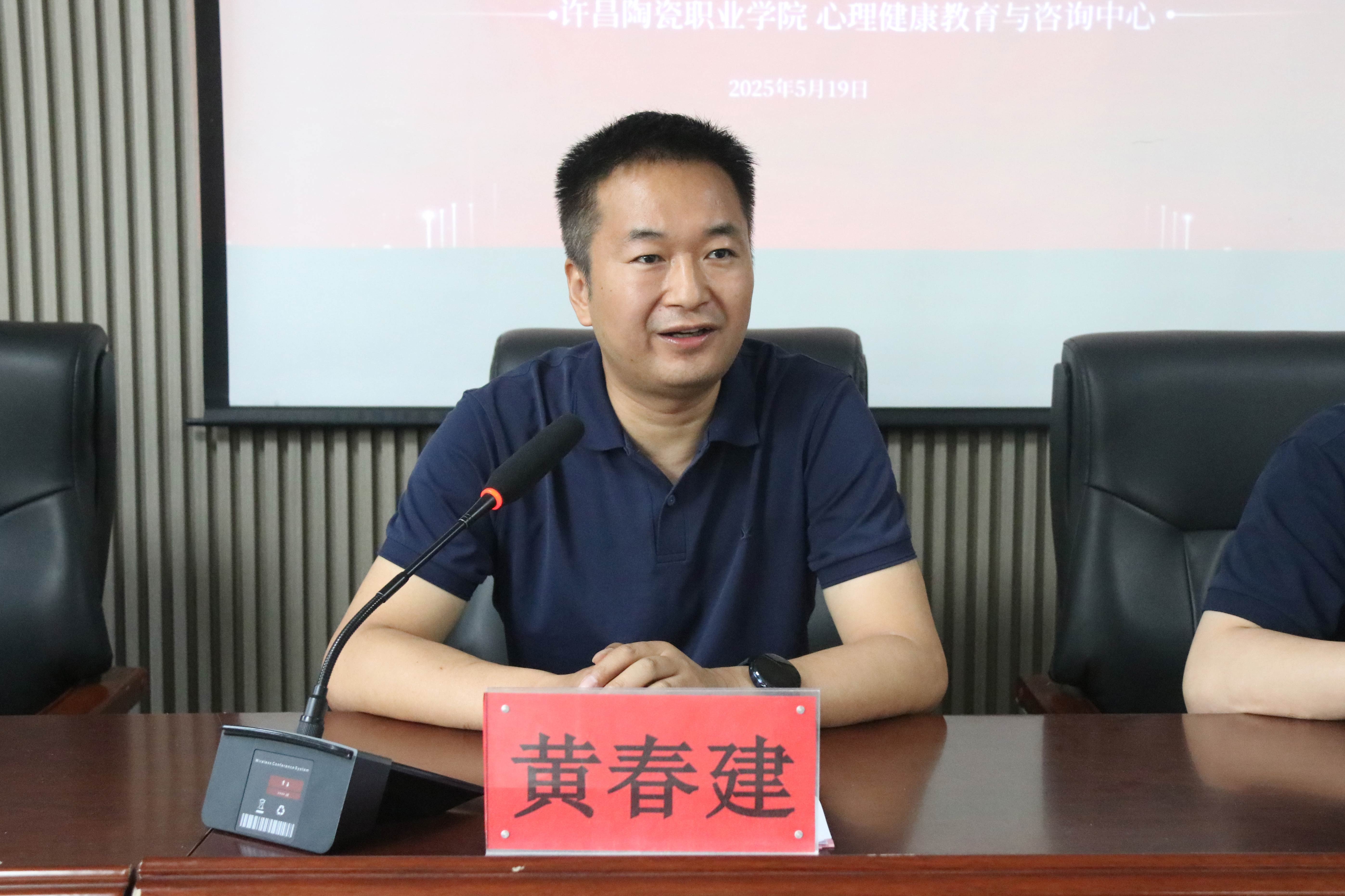 黄春建在致辞中强调,学校始终高度重视心理健康教育工作,并将其作为育人核心任务,通过构建四级网络体系、持续开展多样化主题活动等,为师生提供全方位心理健康服务。他要求各二级学院精心组织活动、强化落实责任,确保工作实效。同时号召全体学生积极参与活动,主动成为自我探索的践行者、乐观心态的传播者,师生携手营造关注心理健康的校园氛围。