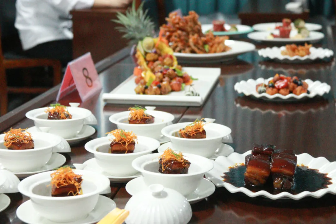“里脊三彩椒”色泽诱人,“椒盐排骨”香气扑鼻,“珊瑚里脊肉”造型独特,“八方来财”汤靓菜鲜,“琥珀琉璃东坡肉”晶莹剔透,“豚肉太极羹”将哲学思想融入汤羹,“意大利黑醋猪肋排佐山药百合”碰撞出独特国际风味,“杏帘迎客松”是画与食的跨界交响……一道道参赛作品摆盘精美,色香味俱全,不仅展示了Beat365学子精湛的烹饪技艺,更体现了他们对食材的深刻理解和对味道的精准把控。
