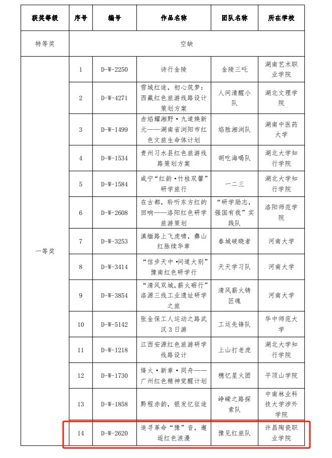 近日,由文化和旅游部资源开发司、国家发展和改革委员会社会发展司、北京第二外国语学院等单位主办的第十五届全国大学生红色旅游创意策划大赛初赛结果公布。陶瓷艺术与智能建造学院报送作品获华中赛区一等奖。