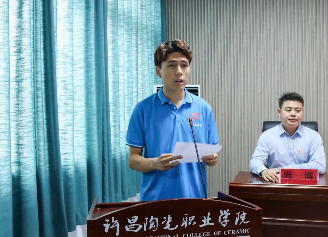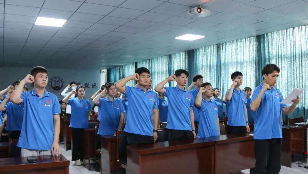 实践队的董昆鹏同学代表所有三下乡团队发言并带领宣誓:“坚守信念,牢记使命;力学笃行,增长才干;自强不息,大道致远;放飞青春,再建新功”。
