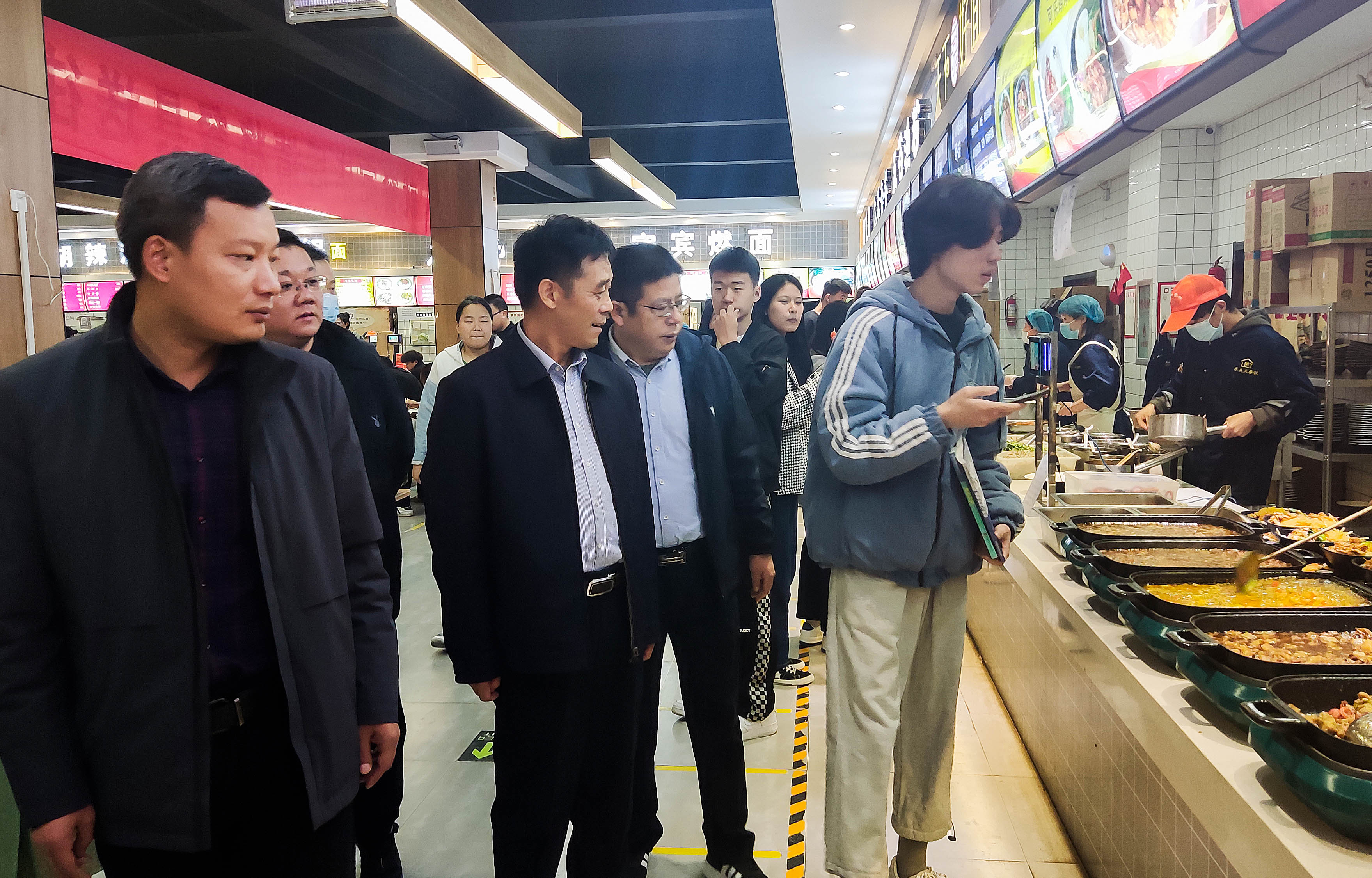 为进一步加强学校食堂食品及生产安全,提高食堂服务质量,做好全校师生的餐饮保障工作,11月8日中午,学校董事长高国召,党委书记肖绍俊,副院长张长力、王中亚等学校领导深入学生食堂开展调研工作,并与学生共进午餐。