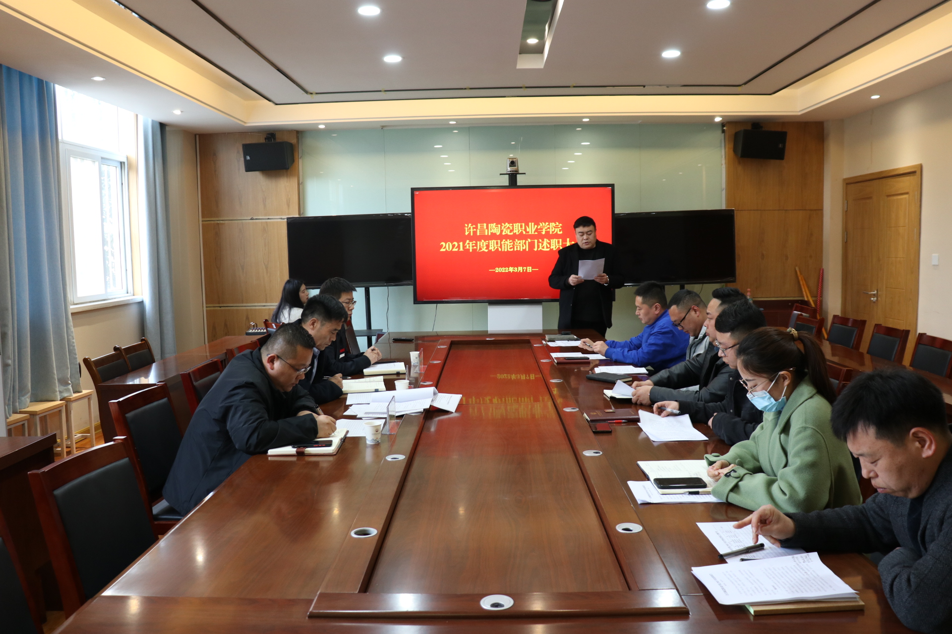 会上,各职能部门负责人依次进行述职,汇报了个人在2021年的履职情况和各项业务开展情况,重点介绍了经验做法,查找了问题不足,阐明了整改目标及措施,明确了下一阶段的工作方向和工作重点。