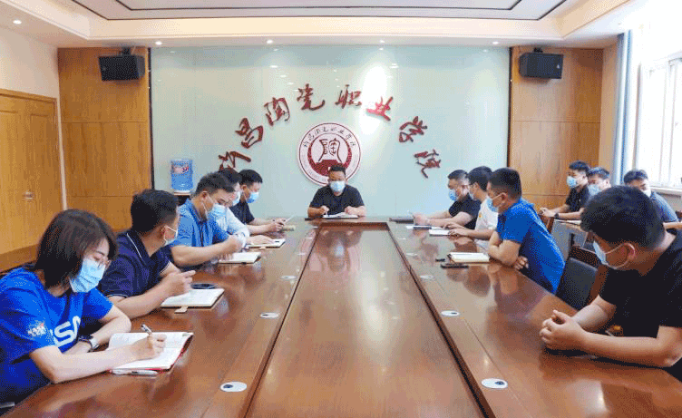 工会主席郭磊宣读了许昌市新冠肺炎疫情防控指挥部发布的《关于进一步强化高考和中考期间疫情防控工作的通知》,并对其中闭环管理、核酸检测、应急机制等方面进行了强调,尤其强调了涉考人员需提前进行十四天健康打卡。