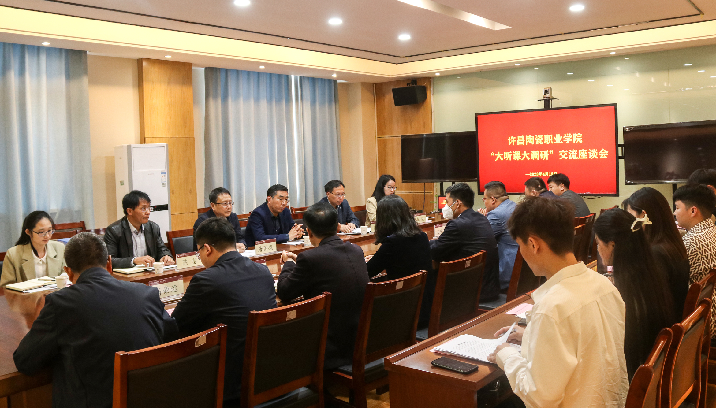 为深入学习贯彻党的二十大精神和习近平总书记关于思政课建设的重要论述,根据河南省教育工委、河南省教育厅《关于开展2023年度全省高校春季学期思政课“大听课 大调研”活动的通知》安排,4月13日上午,省第十二调研组组长、信阳师范学院马克思主义学院院长唐国战一行6人莅临Beat365听课调研并开展座谈。学校党委书记肖绍俊,党建指导员、党委副书记岳晓娜,副院长王中亚,工会主席郭磊出席座谈会,相关部门负责人、思政部教师代表及学生代表参加会议。会议由岳晓娜主持。