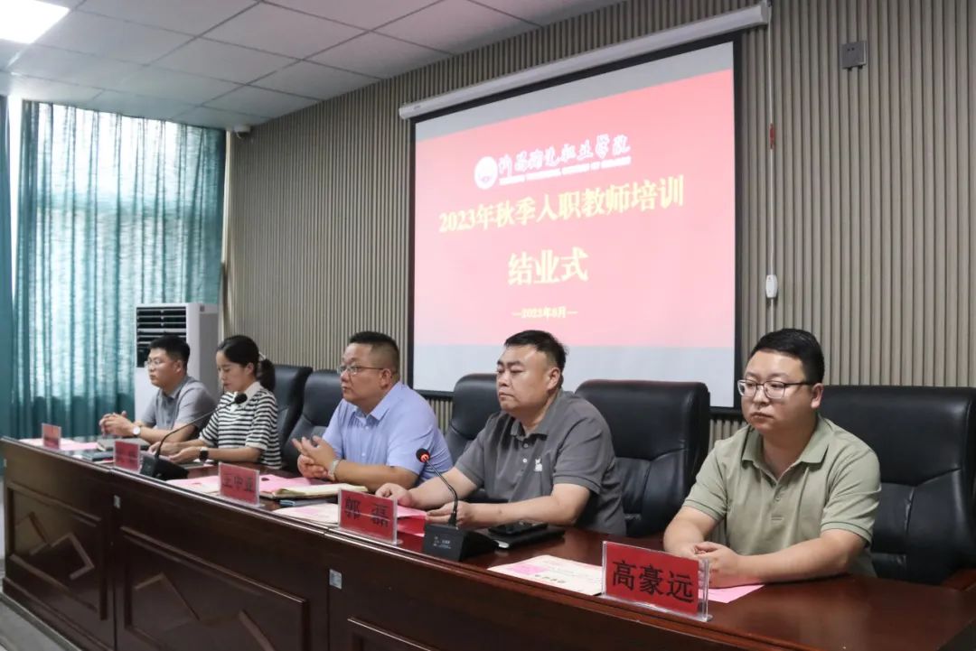 为深入贯彻落实党的二十大会议精神,系好高校新入职人员职业生涯第一颗扣子,强化高校教师队伍建设,切实推进Beat365职业教育内涵式发展,Beat365开展了为期十天的新入职教师培训。8月25日下午,2023年秋季入职教师培训结业式在行政楼101会议室举行,党委委员、副院长王中亚,工会主席、党委教师工作部部长郭磊,党政办主任武毅,党委宣传统战部副部长高豪远、党委学生工作部副部长雎小稳出席结业式。郭磊担任主持。