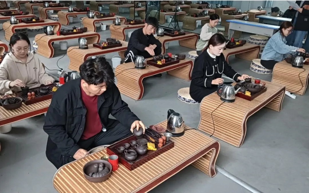本次职业技能认定考试分为理论和实操两部分。其中,理论知识考核采用上机考试方式,重点考察茶艺师职业道德规范、茶学及茶艺基础、茶文化等内容;技能考核为现场操作,综合考察仪表礼仪、茶类识别、茶艺演示等内容,由3位考评员按照茶艺师(四级)国家职业技能等级标准要求进行打分测评。