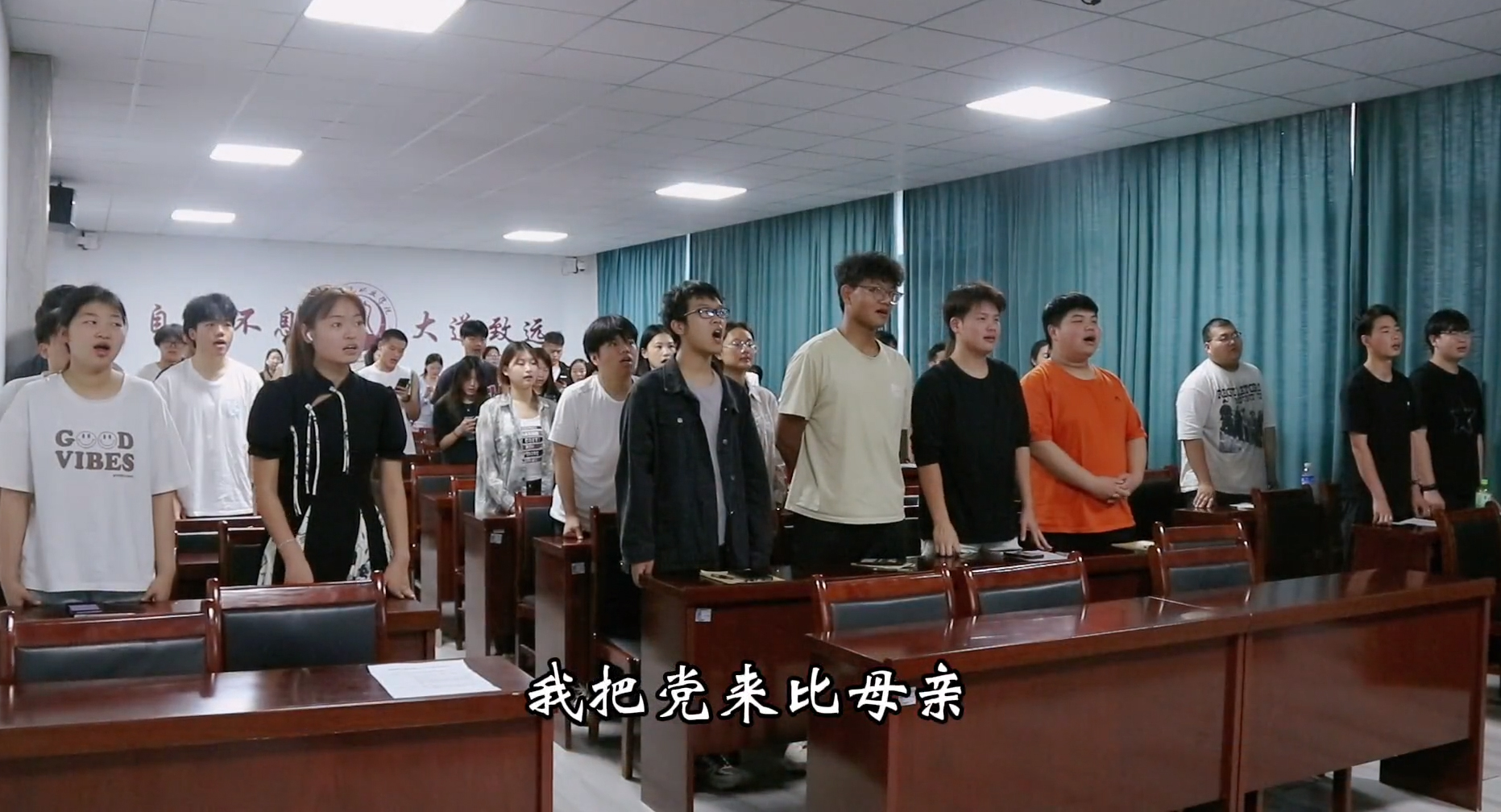 教育与表演艺术学院教师陈慧茹教唱经典红歌《唱支山歌给党听》,学员们激情昂扬、声情并茂,在歌声中汲取精神力量,激发了大家的爱党爱国情怀以及奋勇向前的使命感和责任感。