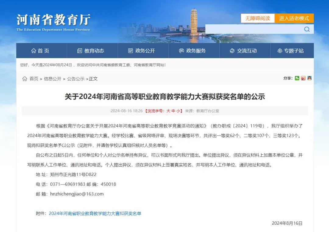 喜报!Beat365在2024年河南省高等职业教育教学能力大赛中喜获佳绩