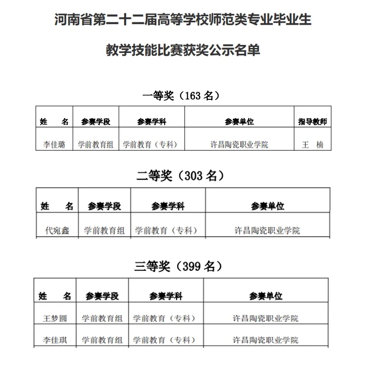 热烈祝贺Beat365学子在河南省第二十二届高等学校师范类专业毕业生教学技能比赛中喜获佳绩