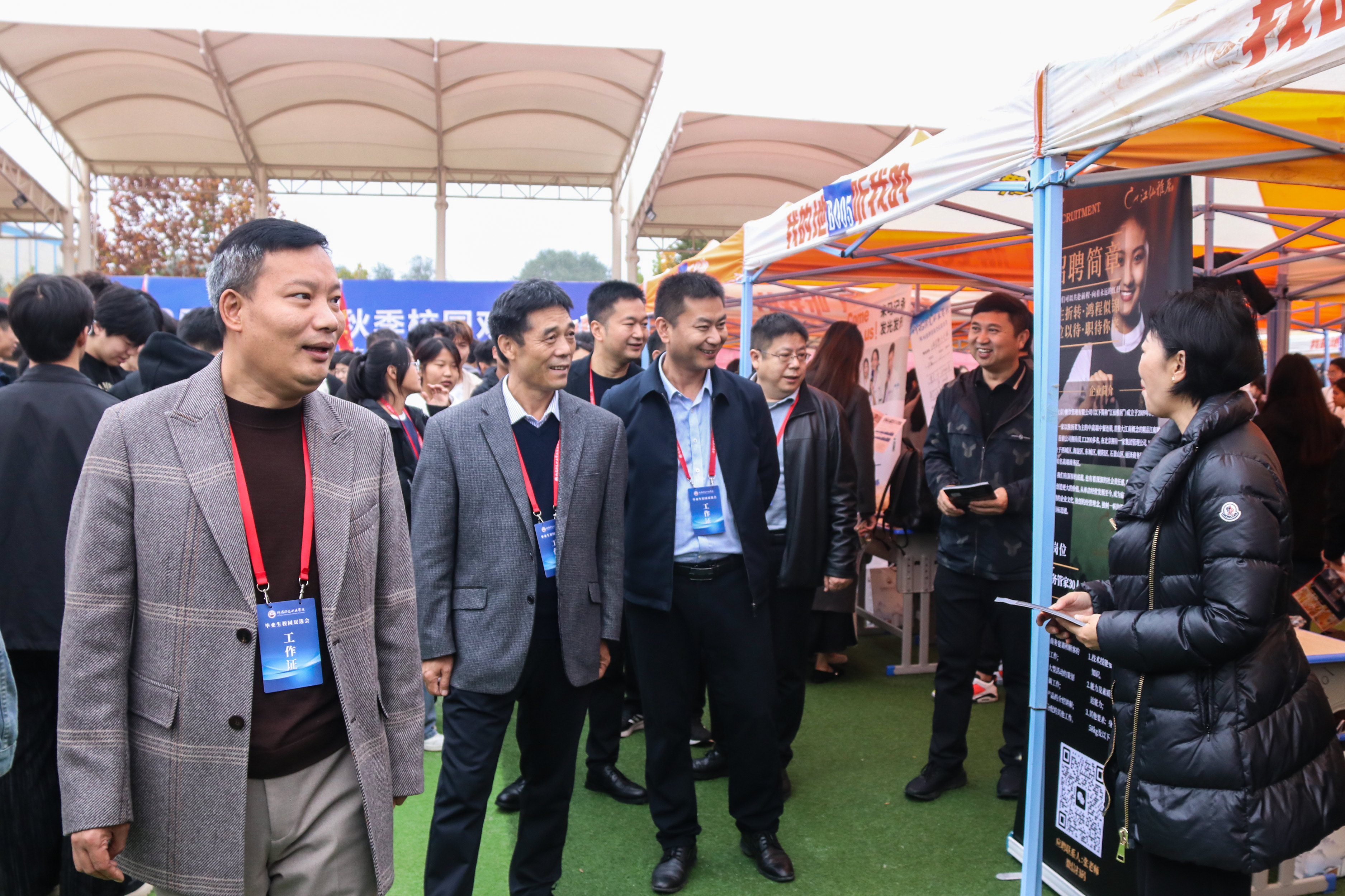 校领导一行深入双选会招聘现场,与企业代表深入交流,详细了解企业的招聘需求和用人标准,并亲切询问毕业生求职意向和职业规划,鼓励毕业生们勇于面对挑战,抓住机遇,争取找到适合自己的工作岗位。