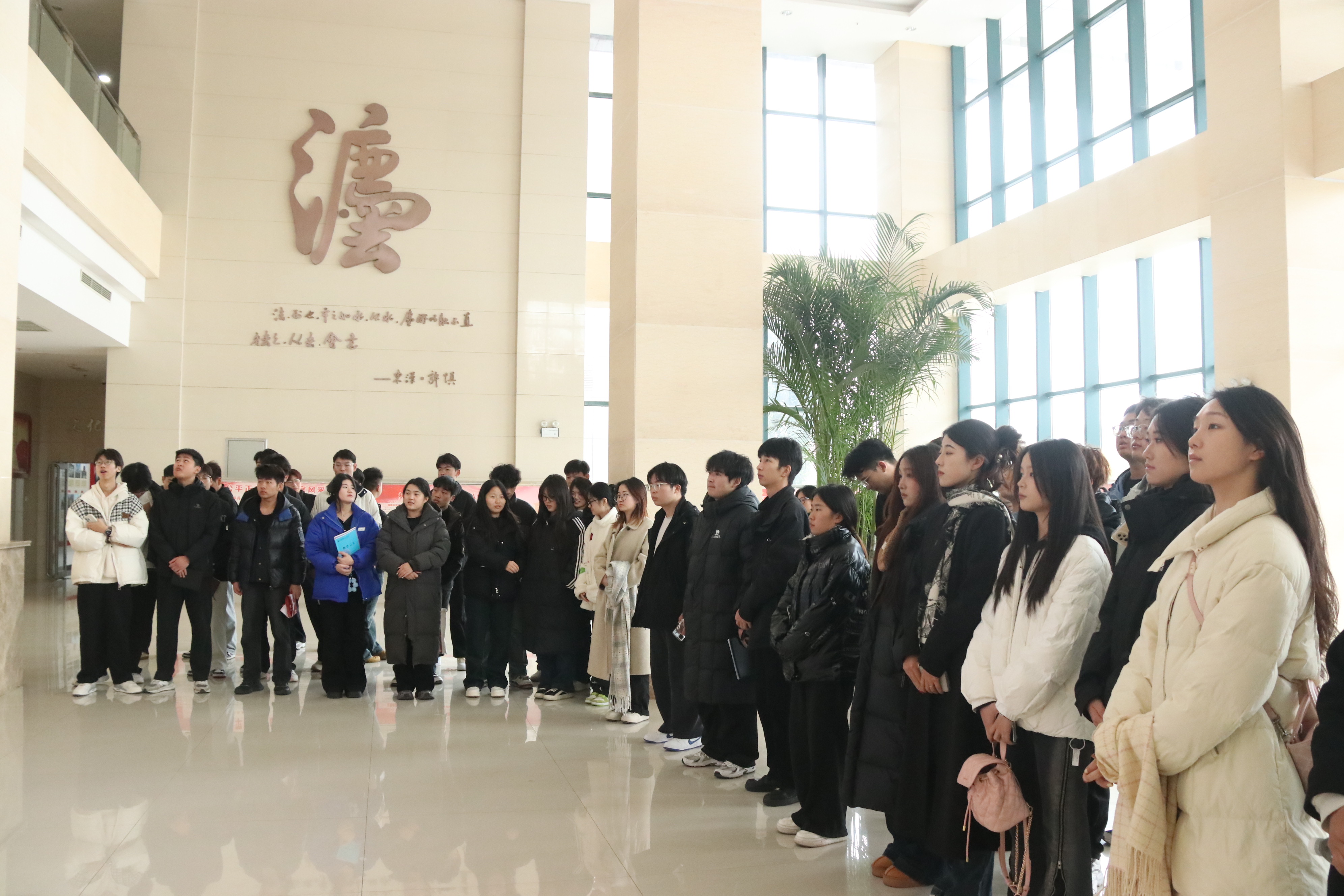 在法院讲解员带领下,同学们参观了法院诉讼服务大厅,了解了建安区法院的建设情况、立案流程、智能化立案等特色诉讼服务,并亲身体验诉讼服务区域各项便民、利民措施和服务终端设备,使师生们对法院立案流程、诉讼服务中心的职能有了全面的了解。在法院党史馆、廉政文化展厅和党建文化长廊,讲解员详细介绍了法院党风廉政建设和历史荣誉,为大家解读习近平法治思想,让师生们接受一场法治教育的洗礼。