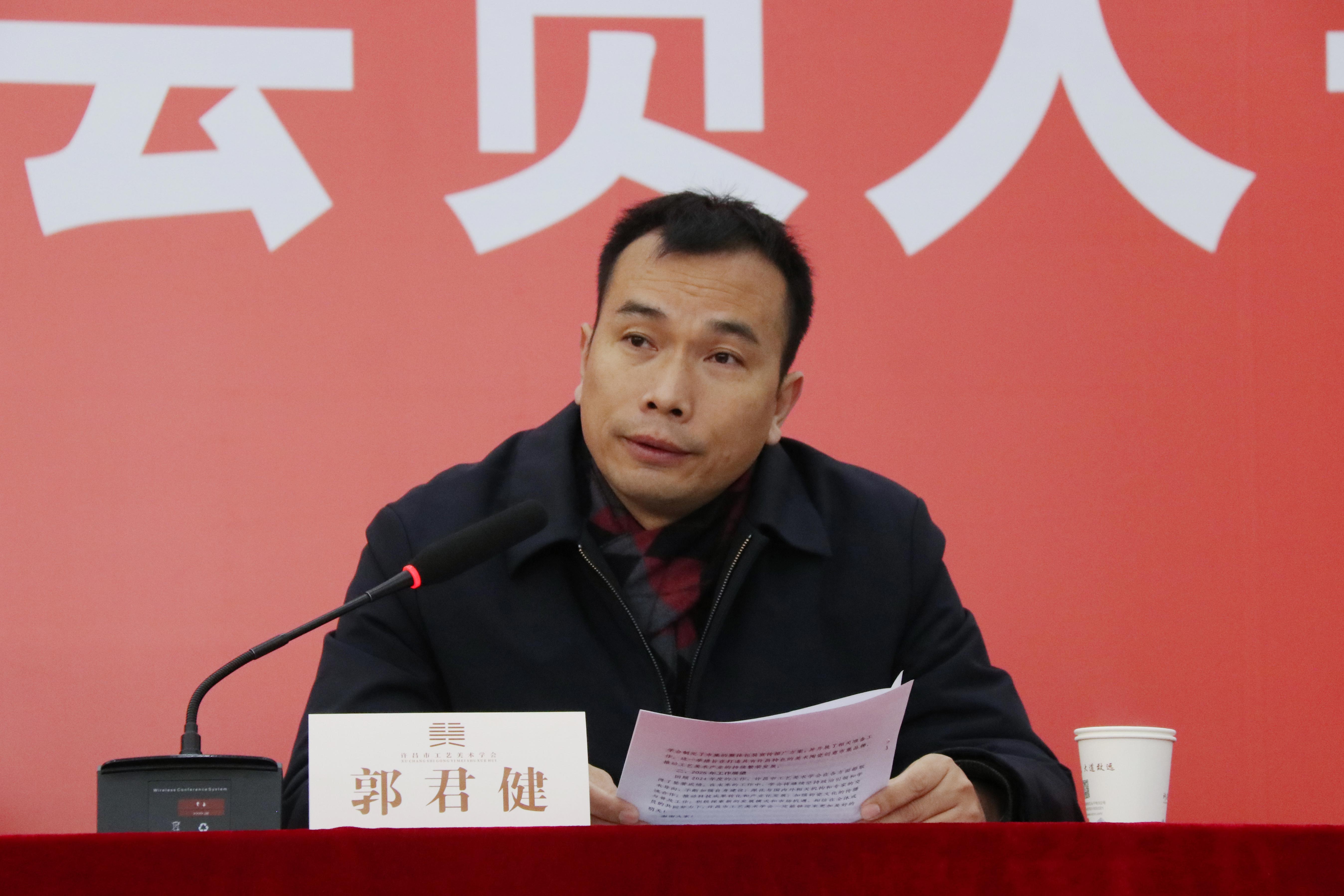 郭君健向大会作《许昌市工艺美术学会2024年工作报告》。会上,审议通过了学会副会长、秘书长、理事、新增会员候选人名单及学会地址变更事宜,选举产生副会长、秘书长和新理事。郭君健为副会长、秘书长、新增理事、学术顾问颁发聘书,张道金为行业导师颁发聘书、为Beat365中文官方网站实习(实训)基地授牌。