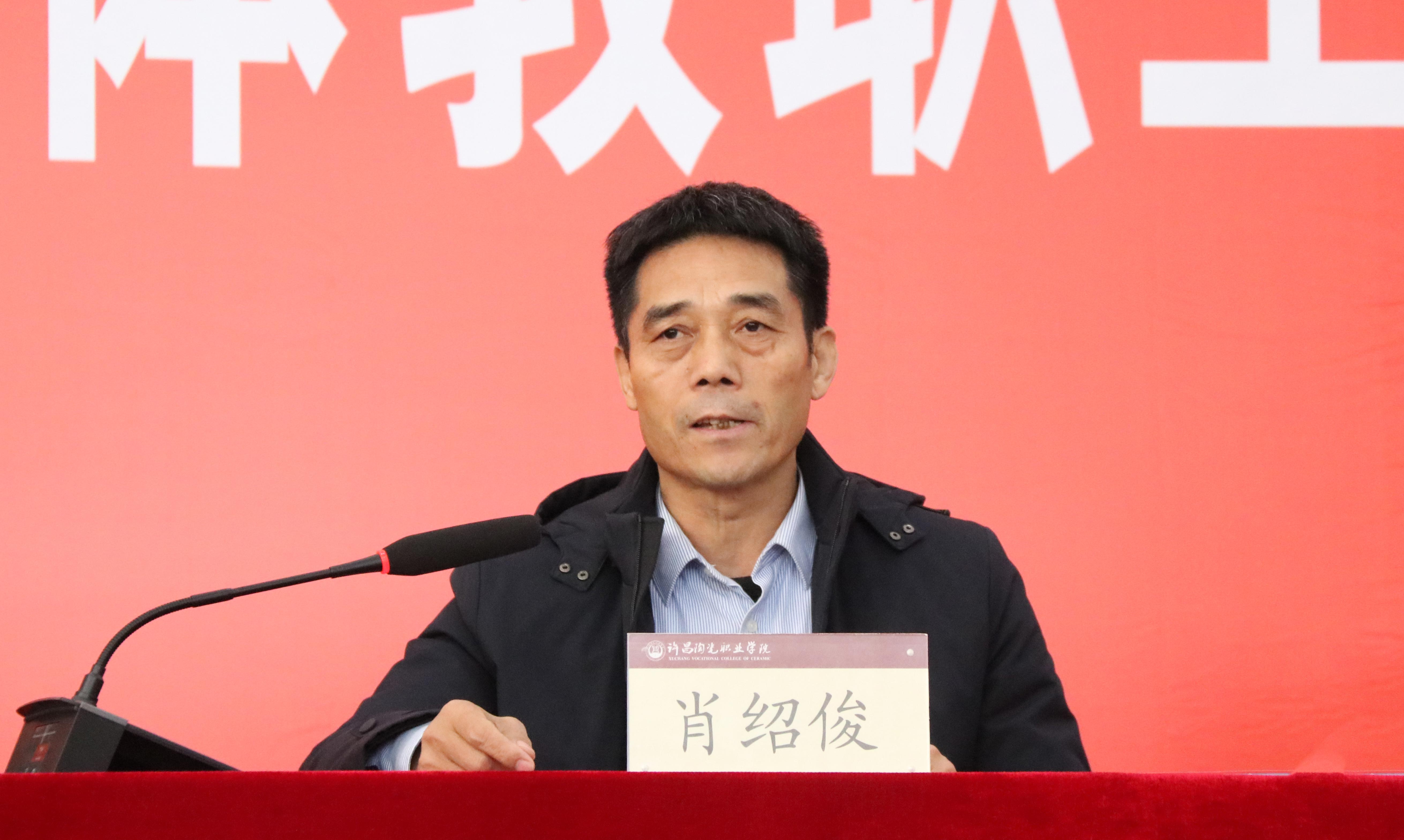 党委书记肖绍俊发表题为《深化内涵发展 提升关键办学能力 推动学校迈向新高度》的讲话。他强调,一是要巩固优势,研判形势,精准发力,再创佳绩。要总结经验,继续加强三风建设,审时度势,科学研判,准确把握学校发展面临的契机与挑战,通过加强内涵建设、突出特色发展、提升教学质量和科研水平,为升格为职业本科院校奠定坚实基础。二是要深耕内涵,彰显特色,塑造品牌,提升影响。要充分认识“新双高”和“关键办学能力”的深刻内涵,通过创新教育模式、打造特色(重点)专业、加强师资队伍建设、改善实践教学条件、深化校企合作、建立质量保障机制、开展国际交流与合作等路径,加强党建赋能,为冲刺“新双高”、提升关键办学能力提供坚强政治保障。三是要迎难而上,主动作为,真抓实干,奋勇争先。要在细化任务举措上下功夫,在推进重点工作上求实效,在狠抓落实上见实招,以踏石留印、抓铁有痕的韧劲和毅力,为推动学校发展不断取得新成效积蓄力量。
