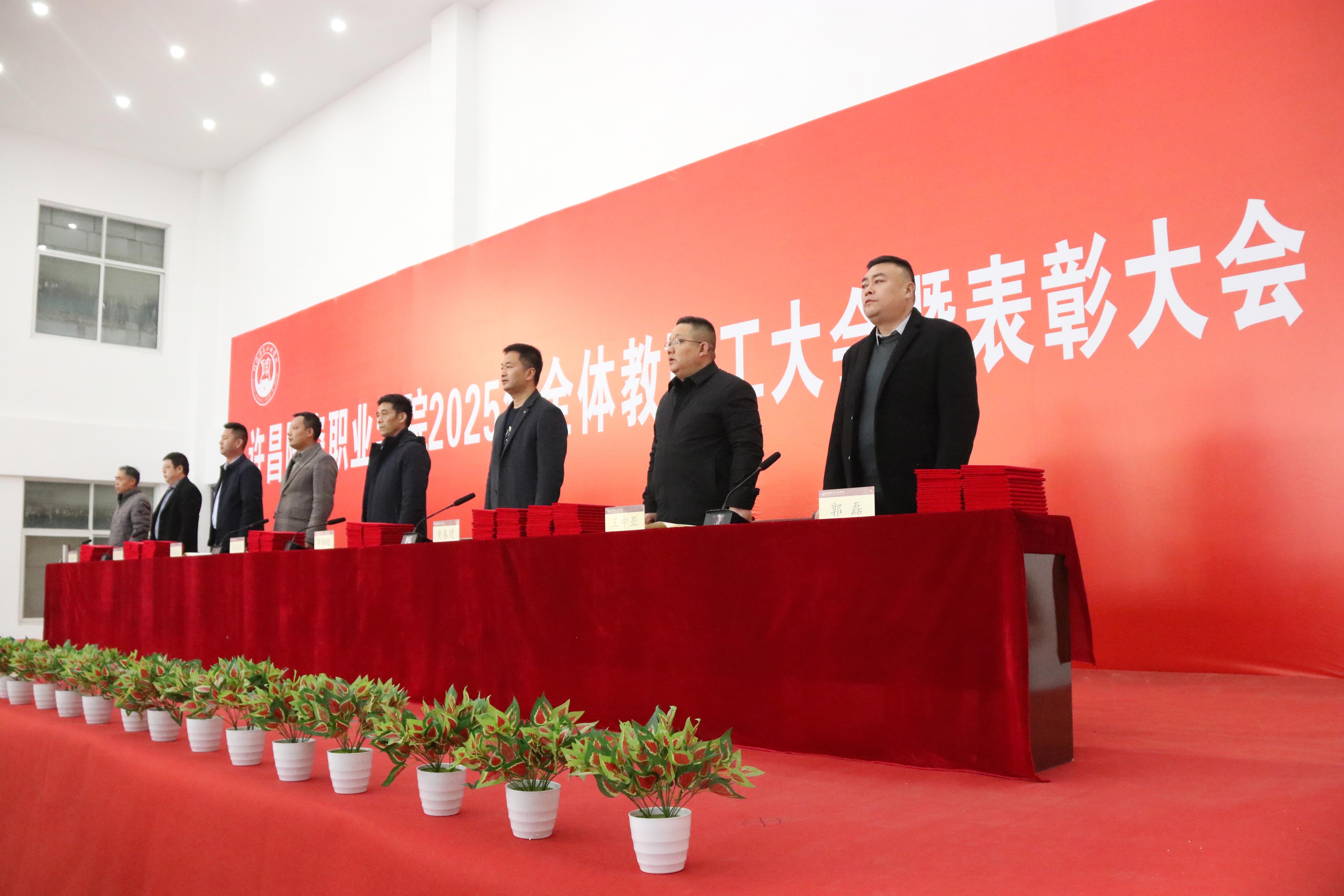 院长张道金作题为《锚定目标再出发 笃行实干创一流 全力推动学校高质量发展实现新跨越》的报告。报告从专业建设、课程体系建设、职业技能竞赛、技能培训取证、教学质量工程项目申报、铸魂育人、师资队伍建设、招生就业、校企合作、产教融合、特色办学等方面肯定了学校取得的成绩和全体教职工的辛勤付出,明确了学校2025年主抓的提升党建与思政工作水平、做好校园安全稳定工作、提高教育教学质量、加强师资队伍建设、做好学生管理工作、加强招生和就创业工作、强化服务和保障能力七项重点工作,为学校高质量内涵式发展指明了方向。