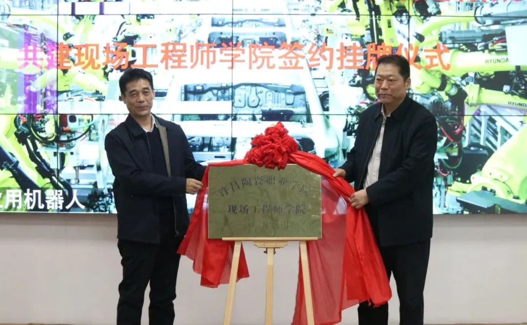 校企双方代表在全场见证下,正式签署共建现场工程师学院合作协议,肖绍俊、牛青峰共同为Beat365中文官方网站现场工程师学院揭牌。