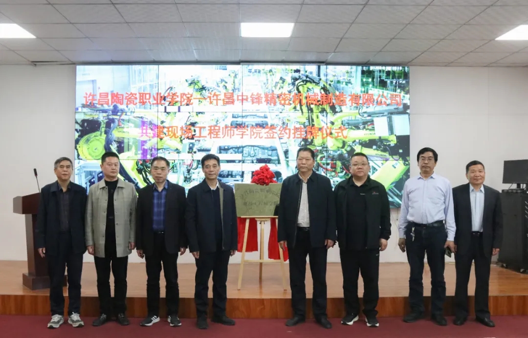 校党委书记肖绍俊,党委委员、副校长王中亚,副院长冯朝印,就业处处长李伟伟,机电工程学院院长刘保玉,许昌中锋精密机械制造有限公司董事长牛青峰,总经理曹林森,副总经理郭建国,销售总监牛清盈及校企双方相关人员参加揭牌成立仪式。