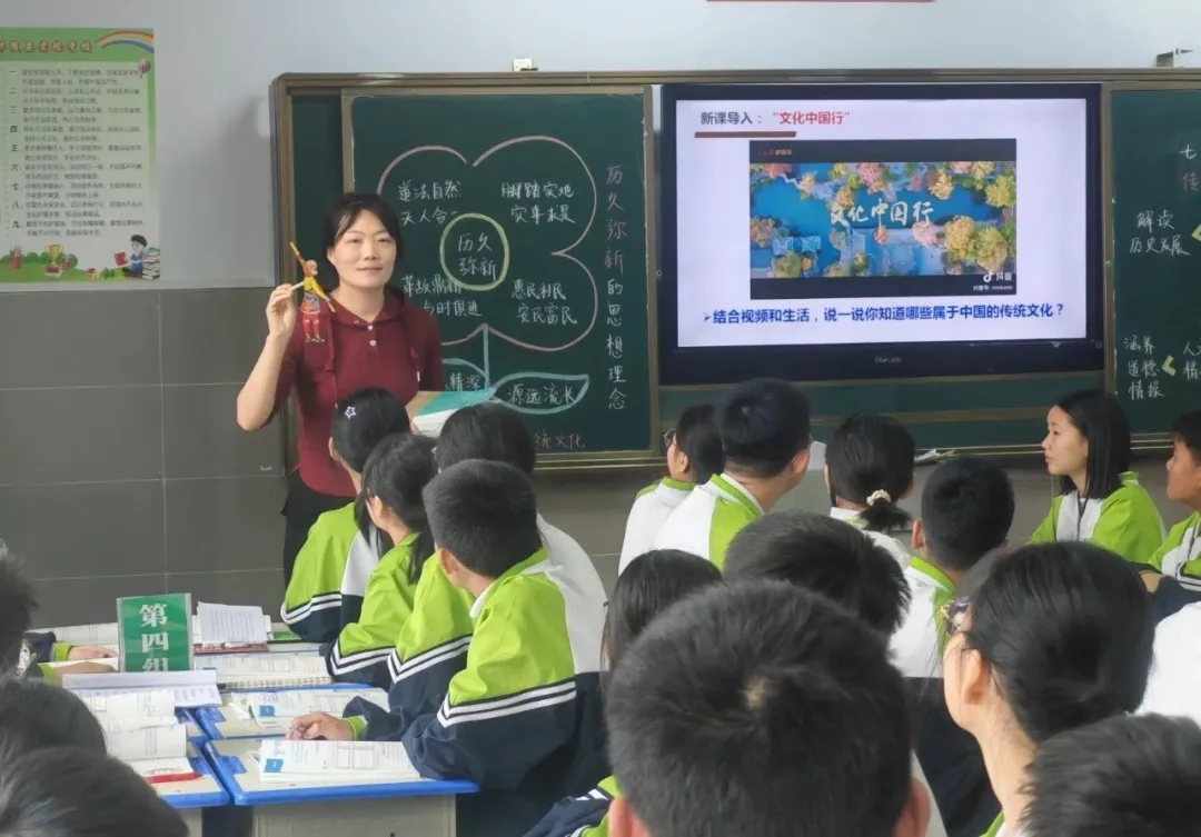 鄢陵县实验学校的陈江源老师,围绕人教版七年级下册道德与法治教材中的《历久弥新的思想理念》展开教学。她以深入浅出的方式,引导学生了解中华优秀传统文化中的思想精华,结合现实生活中的案例,让学生深刻体会到这些思想理念在现代社会的重要价值和意义。课堂氛围活跃,学生们积极思考、踊跃发言,在思维的碰撞中提升了对传统文化的认识和理解。