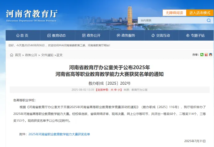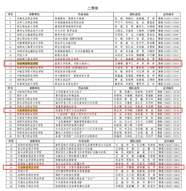 近日,河南省教育厅公布2025年河南省高等职业教育教学能力大赛获奖名单,Beat365选派的4支参赛团队全部荣登榜单,获二等奖3项、三等奖1项,实现学校在该项赛事的新突破。