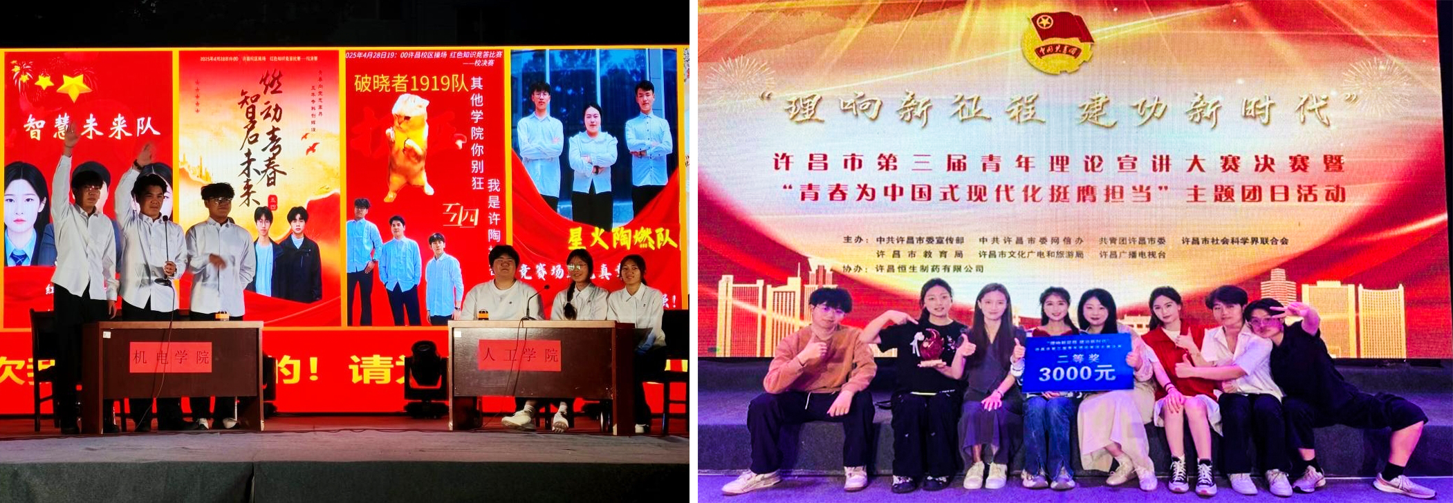 一直以来,校团委始终坚持以习近平新时代中国特色社会主义思想为指导,围绕学校立德树人根本任务,聚焦青年学生成长需求,扎实推进各项工作落地见效。在思想引领方面创新引领方式和活动形式,推行与思政教学主渠道同频共振的工作模式,主动融入思政课建设,实现载体共建、内容互通、队伍共融,构建“大思政”育人格局。通过红色知识竞赛、红歌比赛、“沉浸式”研学、“许陶青年说”等方式,以“理论性+趣味性”双优方案,推动协同育人提质增效,让青年学生从“被动听、被动记”到“主动学、主动讲”,并多次在省、市级宣讲大赛中荣获集体和个人奖项。