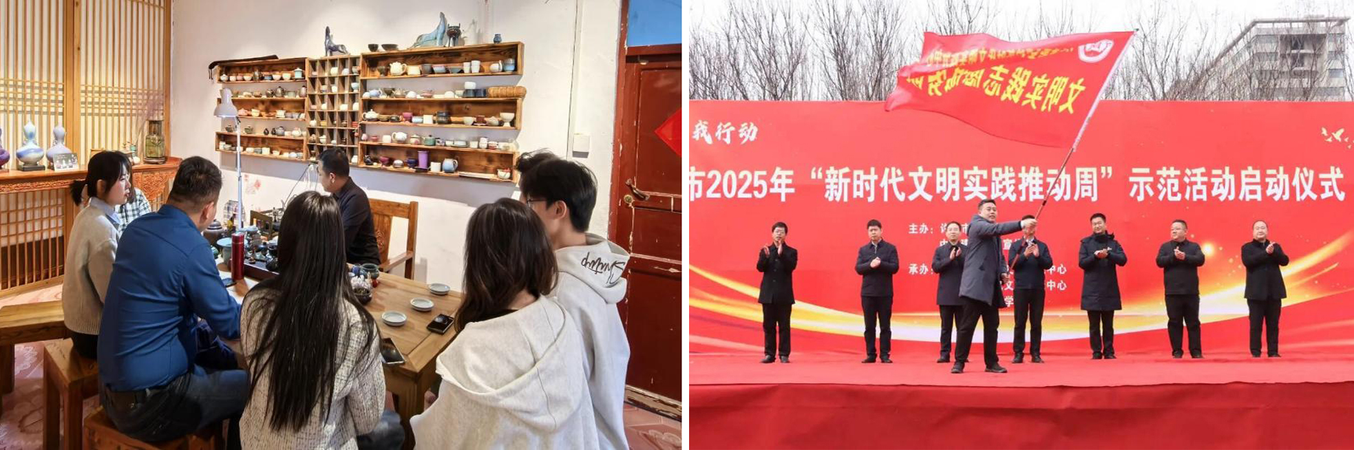 引导青年学生走出校园,投身社会实践,在服务社会中增长才干、奉献力量。与属地新时代文明实践中心联合,录制党的二十大系列宣传稿件,通过全区广播系统,将党的声音传至各个乡村社区;联合团许昌市委,深入禹州市槐树湾村,协调资源,帮助青年陶艺创业人员解决实际困难和需求;联合学校就业部门选派专业青年教师和团员青年,依托专业知识和实训设备等资源,与属地政府联合开设乡村技能培训班,培训人数200余人次;开展“手绘中国梦,建设美丽乡村”公益墙绘活动,墙绘面积5000余平方米;组建“钧瓷文化”小分队,弘扬中华优秀传统文化和钧瓷文化。承办许昌市精神文明月启动活动,打造文明集市,携手属地40余家单位50余个志愿服务点,开展志愿服务。