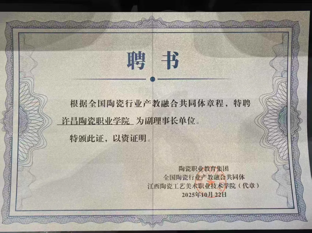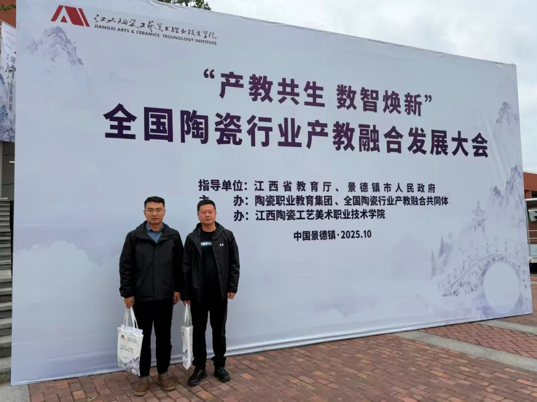 10月22日,由江西省教育厅、景德镇市人民政府指导,陶瓷职业教育集团、全国陶瓷行业产教融合共同体、景德镇陶瓷文化传承创新市域联合体主办,江西陶瓷工艺美术职业技术学院承办的2025年全国陶瓷行业产教融合发展大会暨全国陶瓷行业产教融合共同体(陶瓷职业教育集团)换届会议隆重召开。大会以“产教共生·数智焕新:构建陶瓷高质量发展人才引擎”为主题,汇聚政、校、行、企、研多方力量,共商陶瓷行业产教融合新路径。学校就业处处长李伟伟及相关负责人参会。