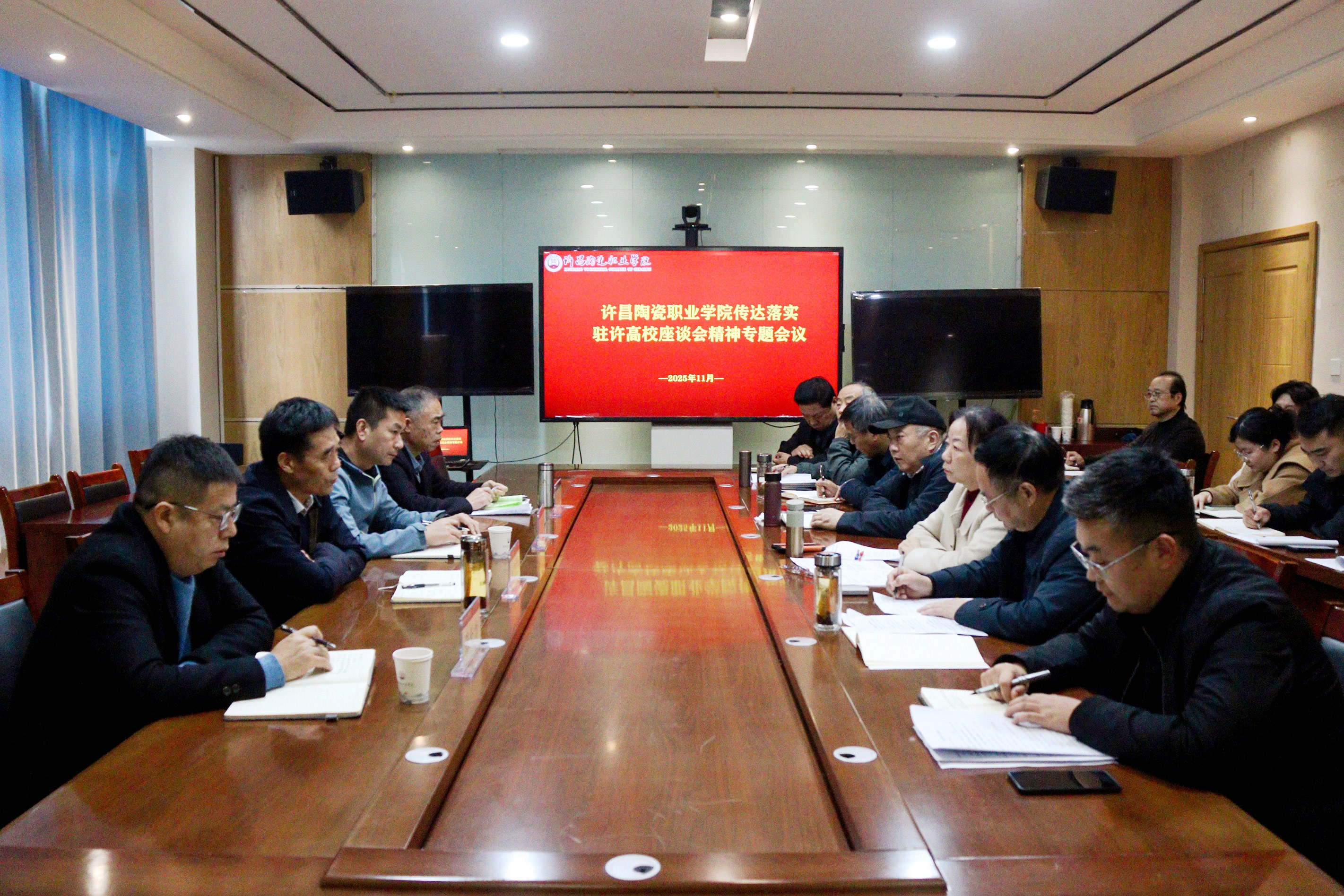 会议要求,一要切实把思想和行动统一到党的二十届四中全会精神上来,全面把握驻许高校座谈会精神,将学校发展置于许昌市“两融五城四跃升”战略布局中统筹谋划,抢抓机遇、深入研究、科学规划、扎实推进;二要加强各部门、学院与专业之间的协同联动,打破院系壁垒,强化整体布局,形成发展合力,结合社会需求与科技前沿,推动跨专业多元协同实践教学,积极组建陶瓷制釉专家委员会和陶瓷造型设计专家委员会,提升师生创新与研发能力,为产业创新注入新动力;三要围绕立德树人根本任务,优化专业结构,坚持守正创新,深化产教融合,找准服务地方的切入点与落脚点,将各项部署转化为推动地方产业链发展的实际举措,为学校高质量发展与区域经济提升提供有力支持。