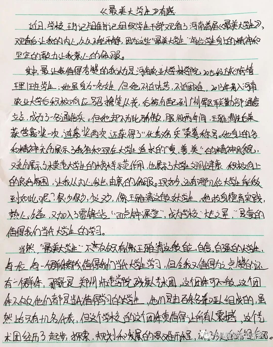 学习《河南最美大学生》系列一|团学干部心得体会展示