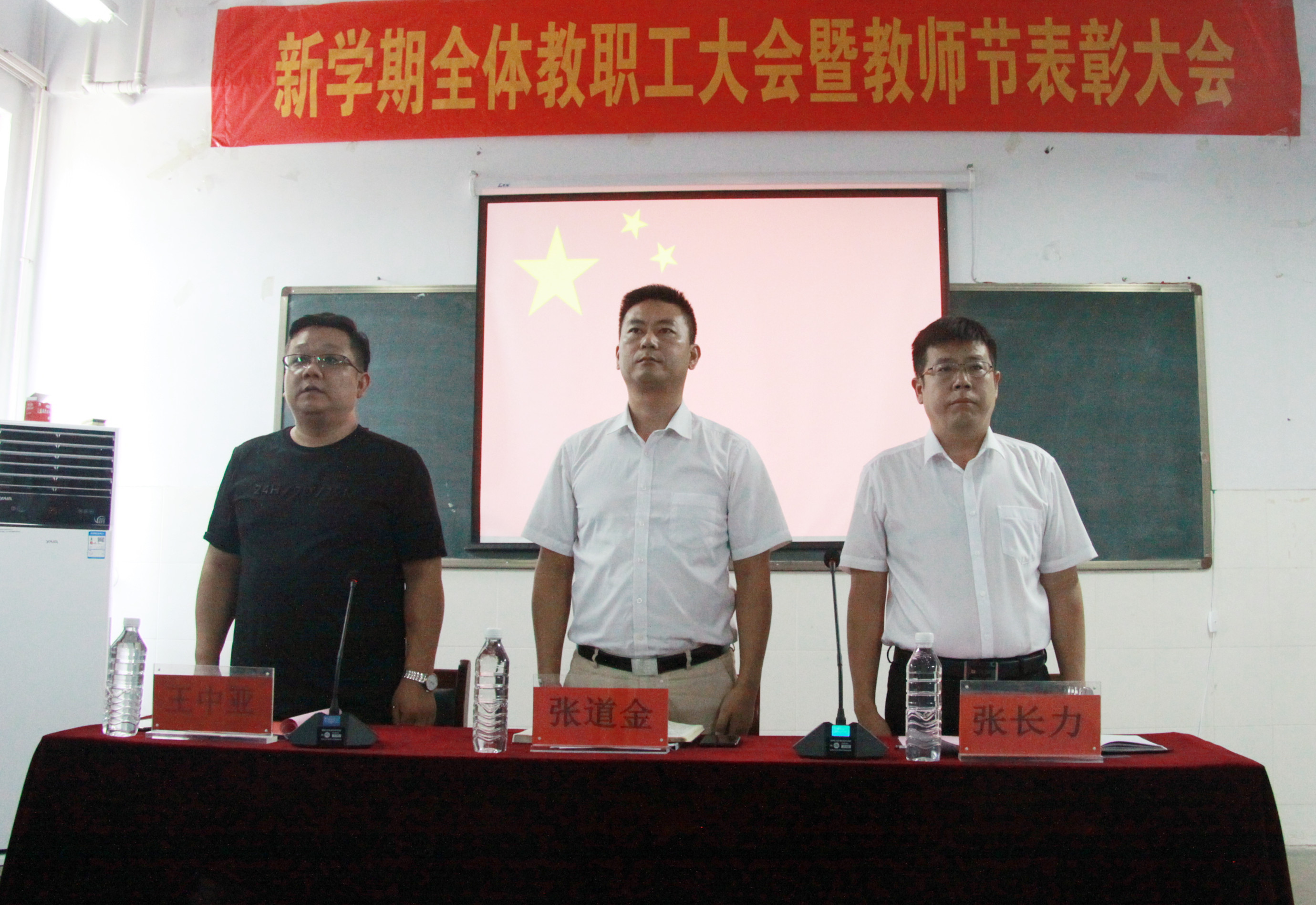 9月9日,Beat365中文官方网站新学期全体教职工暨教师节表彰大会在教学楼101教室举行,院长张道金,副院长张长力、王中亚出席会议,全体教职员工参加会议。会议由副院长王中亚主持。