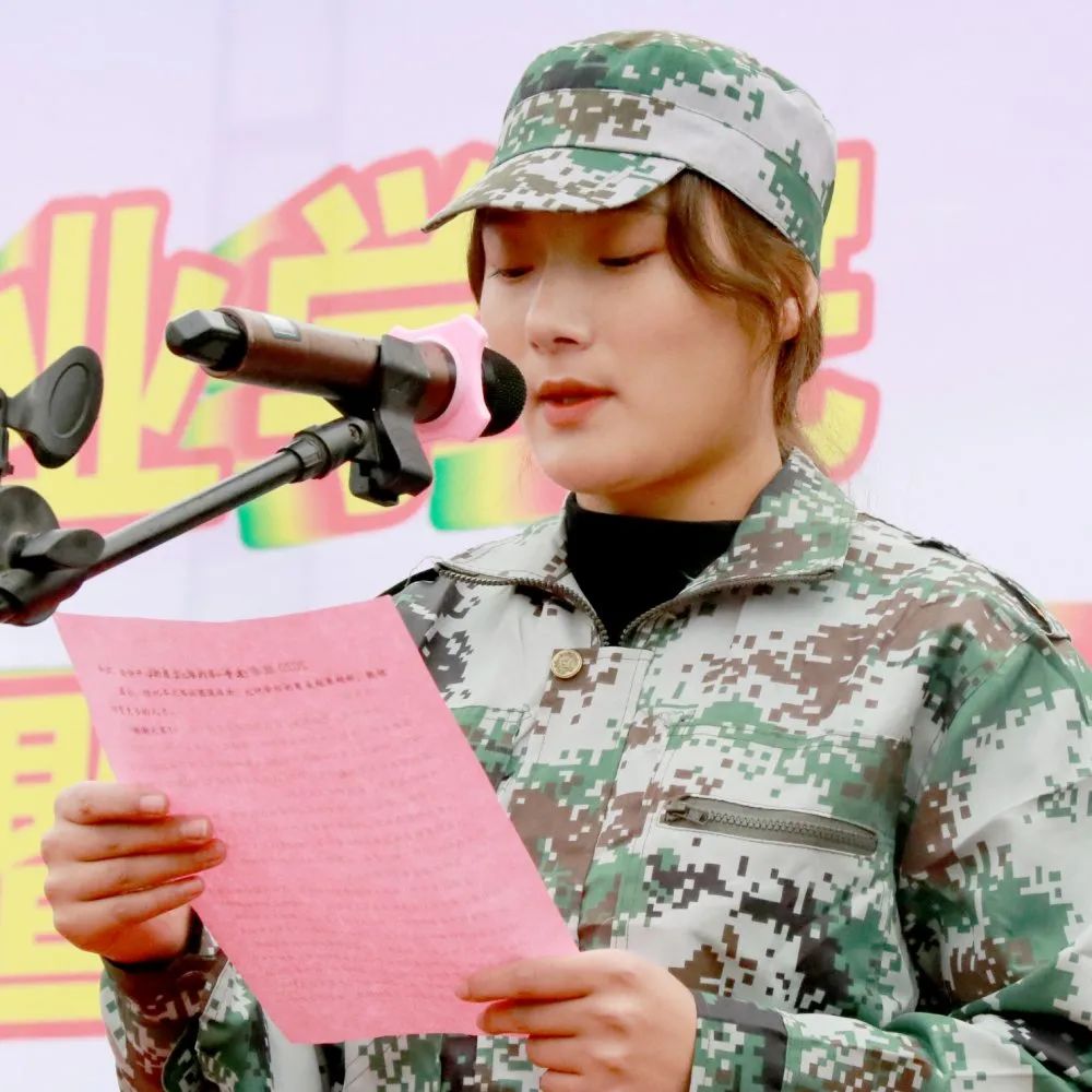 参训学生代表张梦珂在发言中表达了对各位领导、教官、和老师们的感谢,在这次军训中将以军人的标准严格要求自己,听从指挥,服从命令。不仅要领略到军人们无私奉献的伟大精神,也要发扬“同心协力,艰苦奋斗”的光荣传统。